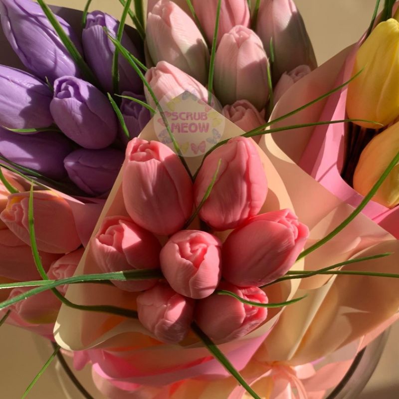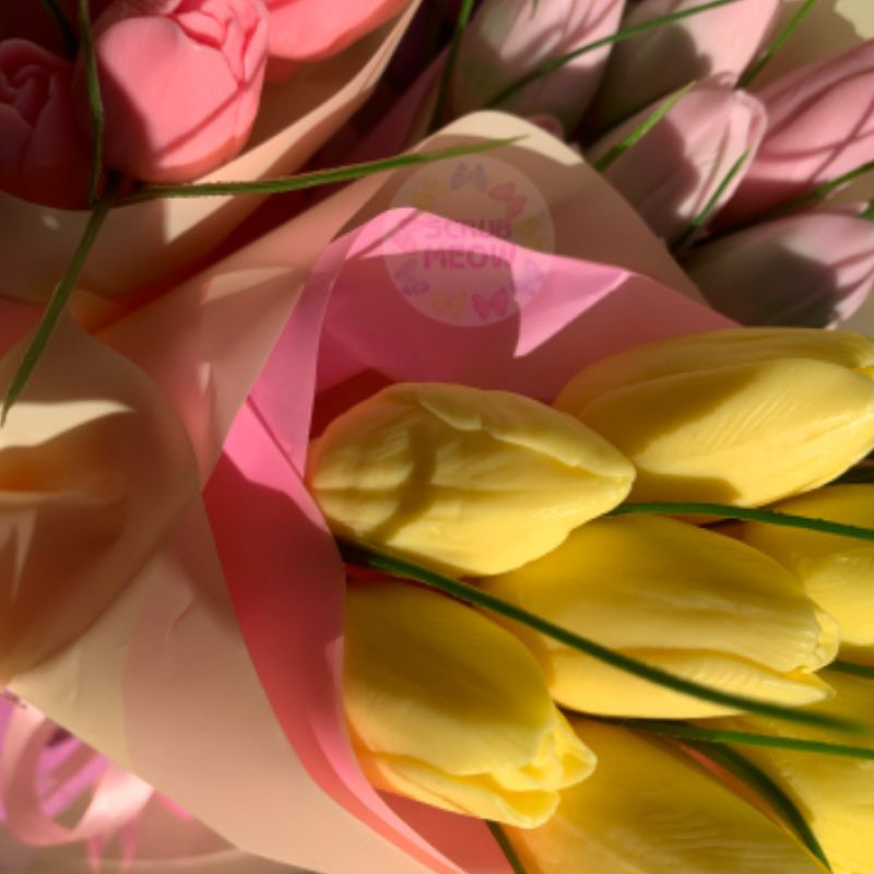 БУКЕТ ТЮЛЬПАНІВ З МИЛУ Щооо? З мила? Квіти з мила? -Так! Квіти
