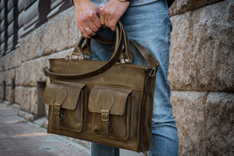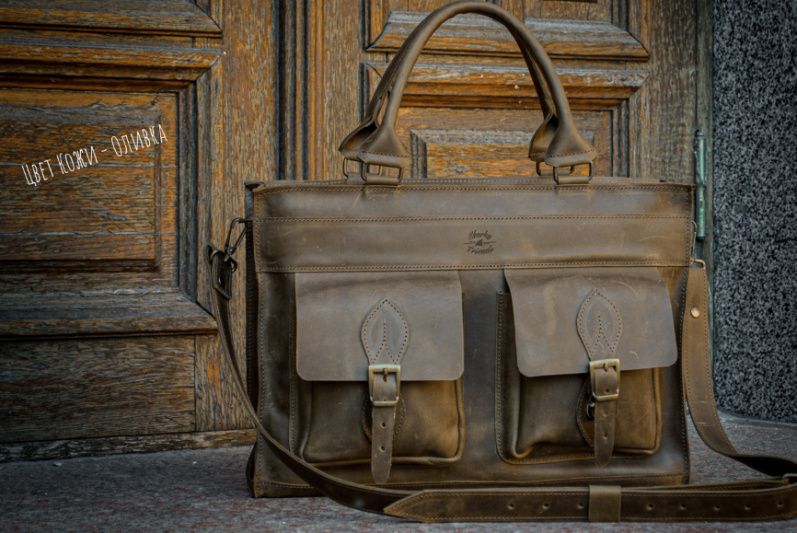 Солідна сумка - портфель "EveryDay" з натуральної винтажной шкіри Crazy Horse оливкового кольору, для успішних і ділових чоловіків. Переваги сумки: - дві зовнішні кишені з фальш-пряжками, під пряжкою міні портфельний замок; - внутрішній простір розділений м'якою перегородкою; - внутрішня кишеня для телефону; - на задній зовнішній стороні середній кишеню на блискавці для ключів або іншого дріб'язку; - тверде дно для утримання форми сумки і безпеки вмісту від зовнішніх фізичних факторів; - металева фурнітура кольору - антична бронза; - сумка закривається по всій довжині на преміальну металеву блискавку з полірованими широкими зубцями, які не дряпають шкіру рук і не залишають затяжки на речах. Розмір сумки: - для ноутбука 17 д: довжина 46, висота 35, товщина 10 см; - для ноутбука 15,6 д: довжина 42, висота 32, товщина 10 см; - нетбук 13.5 дюйма або папку з документами А4: довжина 38, висота 27, ширина 10 (на фото). Шкіряна майстерня Sharky Friends якісне пошиття шкіряних виробів, шиємо на замовлення, за прикладом і Вашими розмірами. Додаткові послуги: - підбір кольору і типу шкіри; - лазерне гравіювання ПІБ або зображення; - коригування розмірів вироби; - відправка по всьому світу; - подарункова упаковка (за попереднім замовленням в день замовлення). Шкіряна майстерня Sharky Friends якісне пошиття шкіряних виробів, шиємо на замовлення, за прикладом і Вашими розмірами. Зацікавлені в оптовому виробництві, працюємо за системою дропшіппінг.