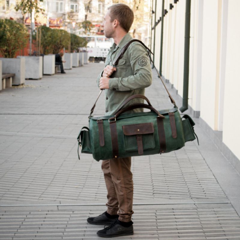 Велика кругла сумка із трьома зовнішніми кишенями та верхньою кришкою на металевих пряжках. Для швидкого доступу до відділення сумки під пряжками встановлені приховані портфельні замки. Під кришкою сумка закривається на блискавку по всій довжині. Сумка на фото виконана зі шкіри зеленого та шоколадного кольору. За спецзамовленням клієнта . Особливості виробу: - якісна коров'яча шкіра завтовшки 1,5 мм; - регульований плечовий ремінь пошитий з двох шарів шкіри, для зручності встановлена плечова накладка; - металева фурнітура кольору антик; - сумка закривається на металеву блискавку ПРЕМІУМ КЛАСУ з полірованими широкими зубцями, які не дряпають шкіру рук та цінні речі. Розміри: Довжина 60 см, Діаметр 30 см. Додаткові послуги: - підбір кольору, типу шкіри та країни виробника; - лазерне гравіювання ПІБ або зображення; - Коригування розмірів виробу; - Відправлення по всьому світу; - Подарункова упаковка (за попереднім замовленням). Шкіряна майстерня Sharky Friends якісне пошиття шкіряних виробів, шиєм на замовлення, за прикладом і Вашими розмірами. Зацікавлені в оптовому виробництві, працюємо за системою дропшипінг.