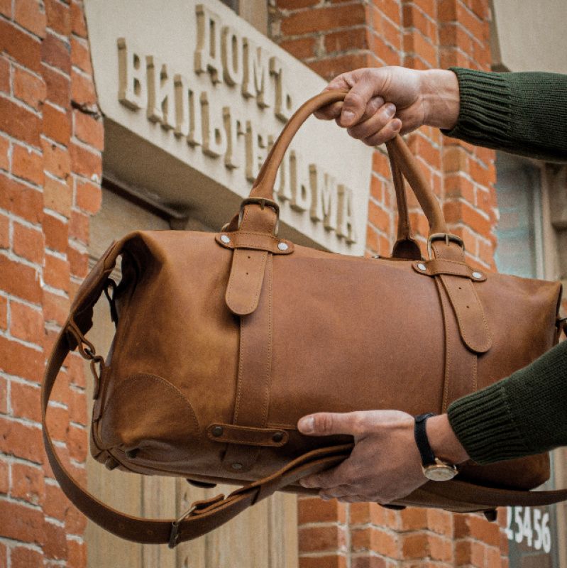 Дорожня шкіряна сумка "Кембридж" створювалася за спеціальним замовленням для успішного чоловіка, який регулярно з дипломатичними візитами літає до Великобританії. Завдання було розробити модель дорожньої сумки для ручної поклажі зі стандартним функціоналом в класичному британському стилі. Характеристики виробу: - повноцінна шкіряна дорожня сумка; - параметри відповідають міжнародним стандартам для ручної поклажі; - матеріал - чорна теляча шкіра з дорогим відблиском, товщина 1.5-1.7 мм; - ергономічні ручки з функцією регулювання по довжині; - регульований плечовий ремінь з накладкою з двох шарів шкіри; - спеціальний транспортувальний ремінець для фіксації сумки на валізі з колесами; - зовнішній відкритий кишеню для швидкого доступу; - внутрішній шкіряна кишеня на блискавці для документів і інших цінних речей; - кути сумки посилені додатковими нашивками; - міцна металева фурнітура; - посилені карабіни; - всі елементи прошиті бежевій ниткою, яка надає моделі стильний контраст; - для більшої надійності все накладні елементи зафіксовані ремінними болтами (НЕ клепка); - сумка закривається по всій довжині на преміальну металеву блискавку з полірованими широкими зубцями, які не дряпають шкіру рук і не залишають затяжки на речах; - в сумці тверде дно, на дно встановлені металеві ніжки. Кембридж Стандарт Довжина 48 см, Висота 25 см, Ширина 30 см. Кемрібдж Міні Довжина 42 см, Висота 25 см, Ширина 18 см. Додаткові послуги: - підбір кольору і типу шкіри; - лазерне гравіювання ПІБ або зображення; - художній розпис стійким акрилом; - кольорова вишивка на шкірі; - коригування розмірів вироби; - відправка по всьому світу; - подарункова упаковка (за попереднім замовленням). Шкіряна майстерня Sharky Friends якісне пошиття шкіряних виробів, шиємо на замовлення, за прикладом і Вашим размерам.Заінтересовани в оптовому виробництві, працюємо за системою дропшіппінг.