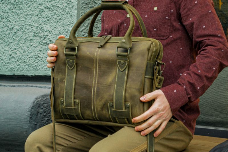 Чоловіча сумка "StyleMen" із натуральної шкіри. Сумка зручна та практична для повсякденного використання. Усередині одне велике відділення, одна кишеня для смартфона, документів чи інших цінних речей. У сумці встановлене тверде дно. Переваги шкіряної сумки: - Сучасний дизайн; - Висока місткість; - для пошиття використовується вінтажна шкіра Crazy Horse завтовшки 1.5+ мм; - регульований плечовий ремінь пошитий з двох шарів - шкіра + якісний текстиль (на замовлення можна пошити повністю шкіряний ремінь); - область блискавки посилена додатковими нашивками для збільшення щільності та створення брутального виду сумки; - всередині одне відділення з подвійною кишенею для паспорта, телефону тощо. аксесуарів; - металева фурнітура кольору - антична бронза; - сумка закривається по всій довжині на преміальну металеву блискавку з полірованими широкими зубцями, які не дряпають шкіру рук та не залишають затяжки на речах; Розміри (см): ширина 38, висота 27, товщина 10. для документів А4 або нетбука 13.5 дюймів; (см): ширина 42, висота 32, товщина 10 під ноутбук 15.5 дюймів +10% до вартості; (см): ширина 46, висота 32, товщина 10 для ноутбука 17 дюймів +20%; Додаткові послуги: - підбір кольору, типу шкіри та країни виробника; - лазерне гравіювання ПІБ або зображення; - художній розпис стійким акрилом; - Кольорова вишивка на шкірі; - Коригування розмірів виробу; - Відправлення по всьому світу; - подарункова упаковка (за попереднім замовленням). Шкіряна майстерня Sharky Friends якісне пошиття шкіряних виробів, шиєм на замовлення, за прикладом і Вашими розмірами. Зацікавлені в оптовому виробництві, працюємо за системою дропшипінг.