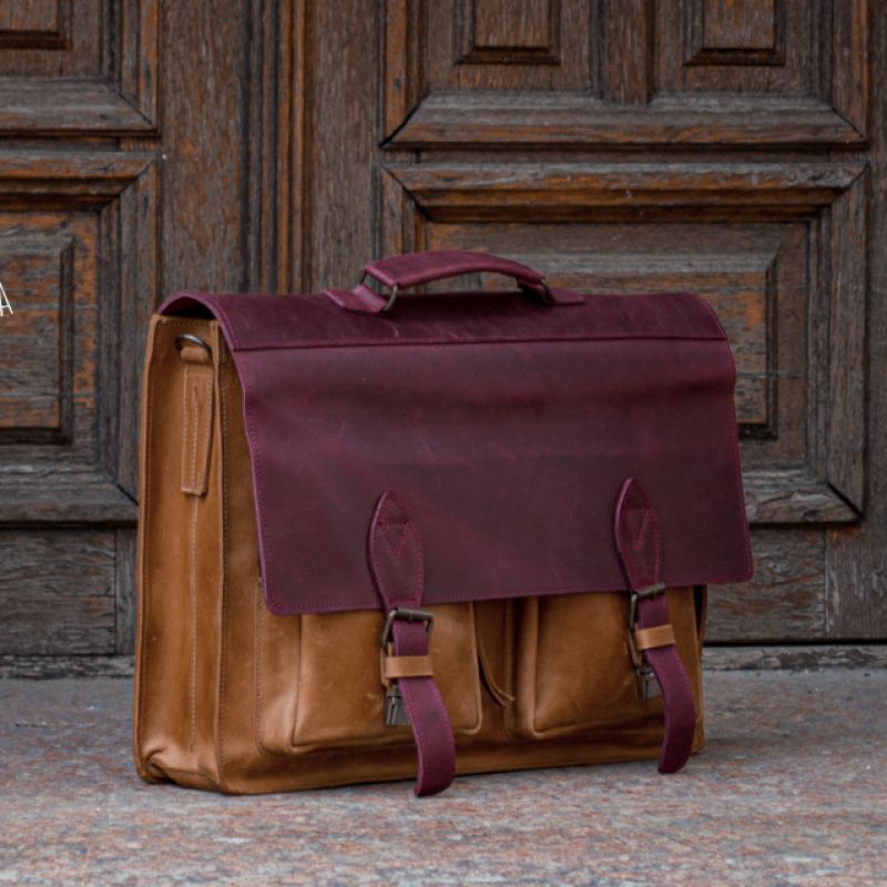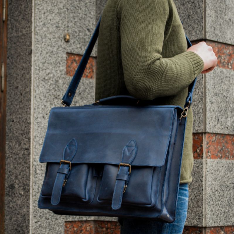 Ділова чоловіча сумка Бронкc - нова модель в лінійці портфелів для щоденного користування. Особливості сумки: - вінтажна теляча шкіра Crazy Horse; - металева фурнітура кольору зістареної бронзи; - сумка закривається на кришку з двома портфельними замками; - для зручності перенесення на кришці встановлена ручка з металевими рамками; - сумка комплектується шкіряним плечовим ременем з функцією регулювання по довжині; - на лицьовій частині кришки два окремих кишені на блискавці; - на задній стороні зовнішня кишеня на блискавці; - всередині одне велике відділення з перегородкою; - на перегородці внутрішню кишеню для телефону і документів. Розміри: (см): ширина 38, висота 27, товщина 10. для документів А4 або нетбука 13.5 дюймів; (См): ширина 42, висота 32, товщина 10 під ноутбук 15.5 дюйма + 10% до вартості; (См): ширина 46, висота 32, товщина 10 для ноутбука 17 дюймів + 20% до вартості; Додаткові послуги: - підбір кольору, типу шкіри та країни виробника; - лазерне гравіювання ПІБ і зображень; - можливість коригування розміру; - подарункова упаковка (передзамовлення) Шкіряна майстерня Sharky Friends якісне пошиття шкіряних виробів, шиємо на замовлення, за прикладом і Вашими розмірами. Зацікавлені в оптовому виробництві, працюємо за системою дропшіппінг.