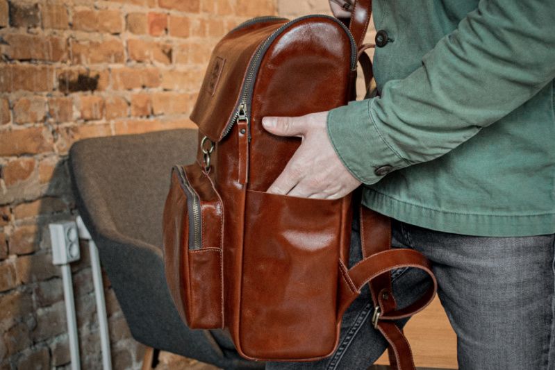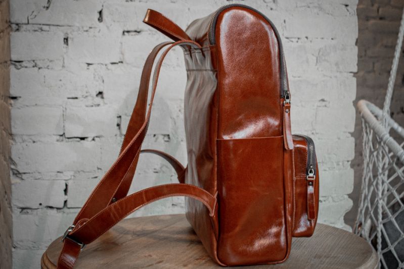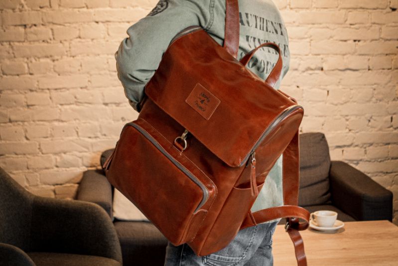 Новинка від команди Sharky Friends рюкзак Рим. Місткий та якісний рюкзак з натуральної глянсової шкіри коньячного кольору. Рюкзак дуже функціональний, практичний та зручний. У такий аксесуар поміститься практично все, що потрібно для подорожей, походу до спортзалу та повсякденного міського життя. Шкіряний рюкзак стане гарним подарунком як для чоловіка, так і для жінки. Особливості рюкзака: - Сучасний дизайн; - Висока місткість; - для пошиття використовується італійська шкіра коньячного кольору; - регульовані плечові лямки шириною 4 см з двох шарів шкіри; - зовнішня кишеня на блискавці розміром: 16*17*3,5 см - ущільнена кишеня на липучці для планшета або ноутбука з діагоналлю 15,6дюйма - металева фурнітура кольором антична бронза Розміри Рюкзака: Довжина 43 см Ширина 33 см Глибина 1 - підбір кольору та типу шкіри; - лазерне гравіювання ПІБ або зображення; - Коригування розмірів виробу; - Відправлення по всьому світу; - подарункова упаковка (за попереднім замовленням). Шкіряна майстерня Sharky Friends якісне пошиття шкіряних виробів, шиєм на замовлення, за прикладом і Вашими розмірами. Зацікавлені в оптовому виробництві, працюємо за системою дропшипінг.