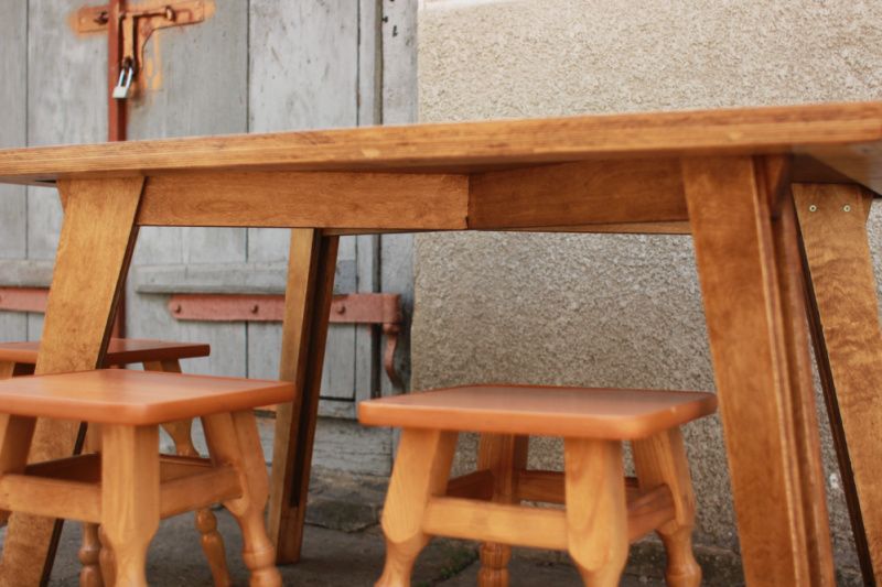 Домашній затишок, сімейне чаювання, заміська садиба, багато світла, легкість, класика – це образи, з якими асоціюється цей обідній стіл. Функціональний та стильний обідній стіл, втілення зручності та лаконічного дизайну.; виконаний у стилістиці скандинавської школи дизайну, що гармонійно поєднується з мінімалістичною графікою. Матеріал (фанера) відрізняється високою міцністю та надійністю; якщо в результаті експлуатації виріб втрачає свій привабливий первинний зовнішній вигляд, то він легко піддається реставрації та модифікації. PS – продається без стільців (стільця на фото для масштабу).