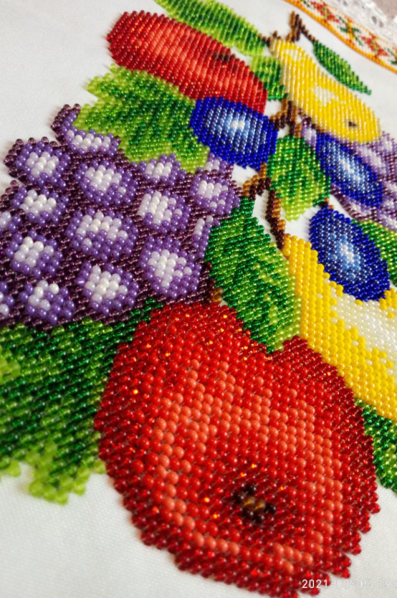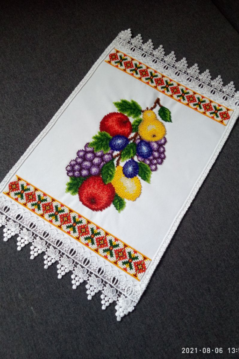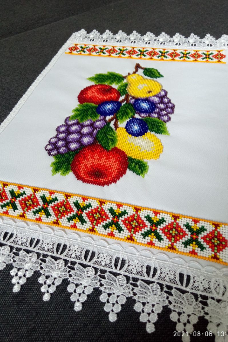 рушничок до Спаса, вишитий чеським бісером, матерія габардин. 30*40см.