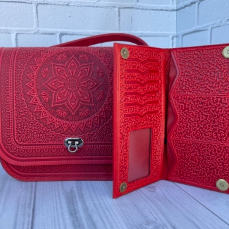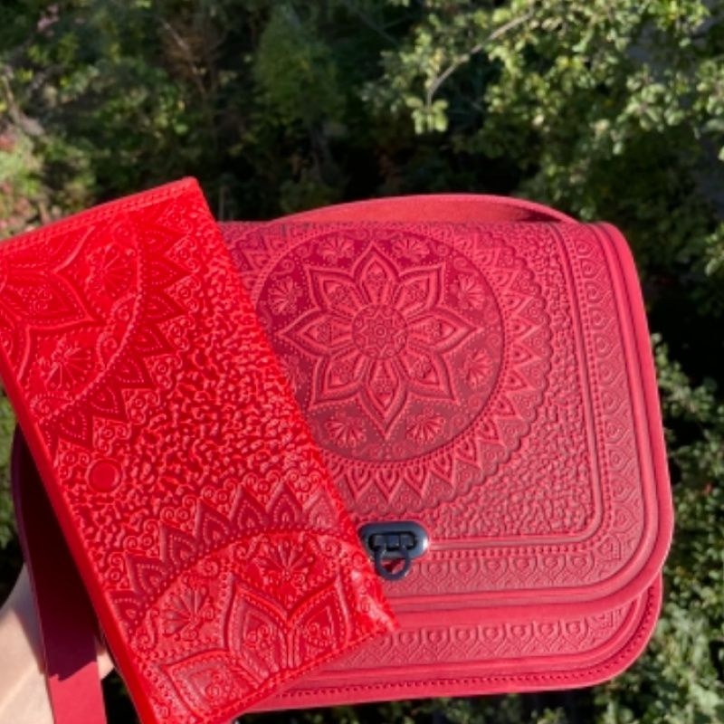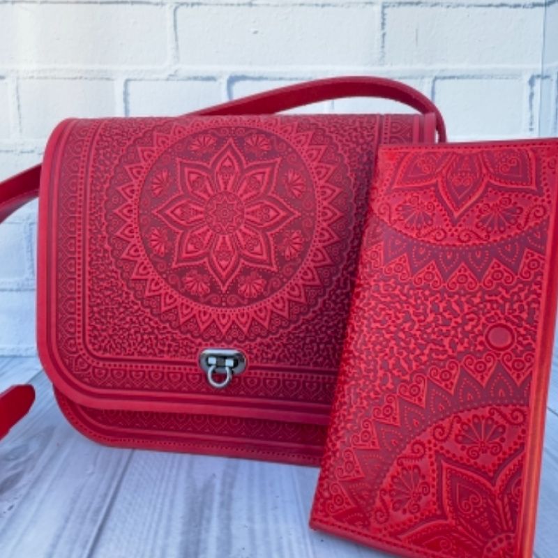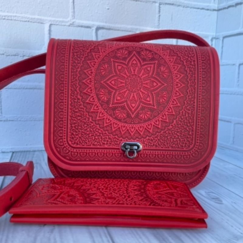Жіноча сумка « Сонце Карпат » із 100% натуральної натуральної шкіри, товщина шкіри 3,8 мм +,. Виготовлено за спеціальною технологією, завдяки якій орнамент зберігає свою красу, форму та функціональність, які не втрачаються з часом. Сумочка ручної роботи, під час виробництва використовуються тільки екологічно чисті та натуральні матеріали. Край сумки оброблений за технологією, яка не зношується і не втрачає колір.