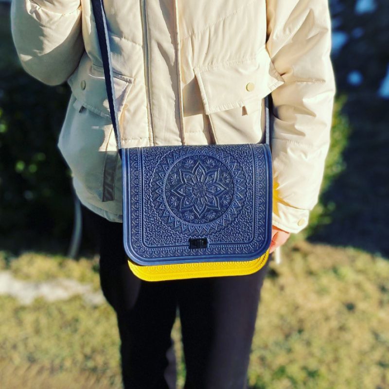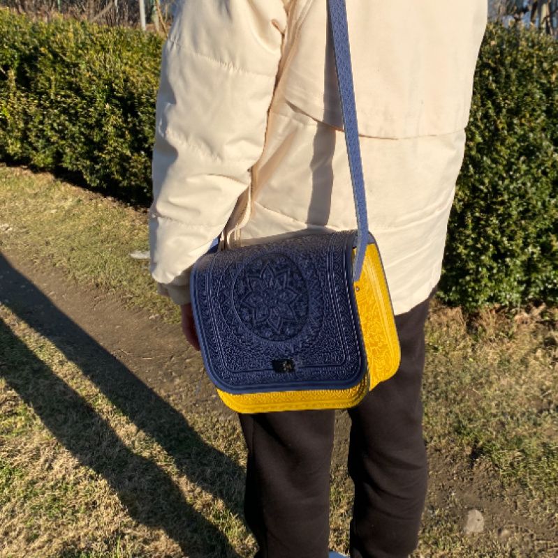 Жіноча сумка « Сонце Карпат » із 100% натуральної натуральної шкіри, товщина шкіри 3,8 мм +,. Виготовлено за спеціальною технологією, завдяки якій орнамент зберігає свою красу, форму та функціональність, які не втрачаються з часом. Сумочка ручної роботи, під час виробництва використовуються тільки екологічно чисті та натуральні матеріали. Край сумки оброблений за технологією, яка не зношується і не втрачає колір.