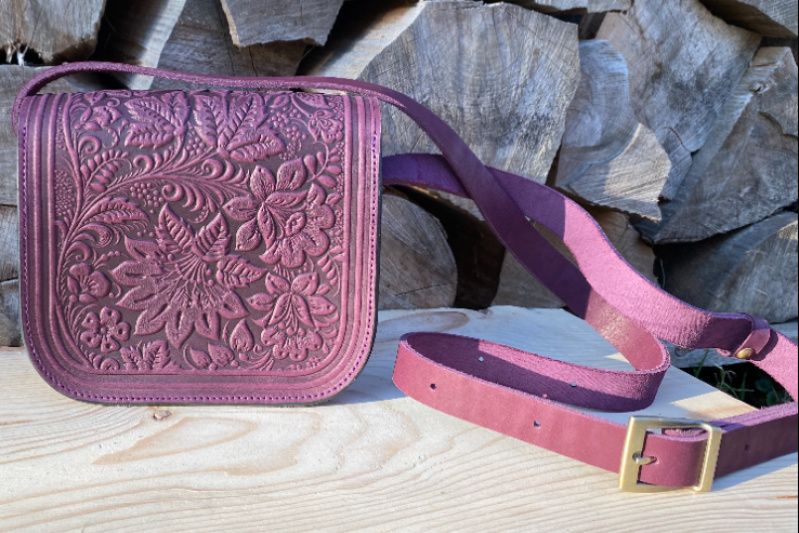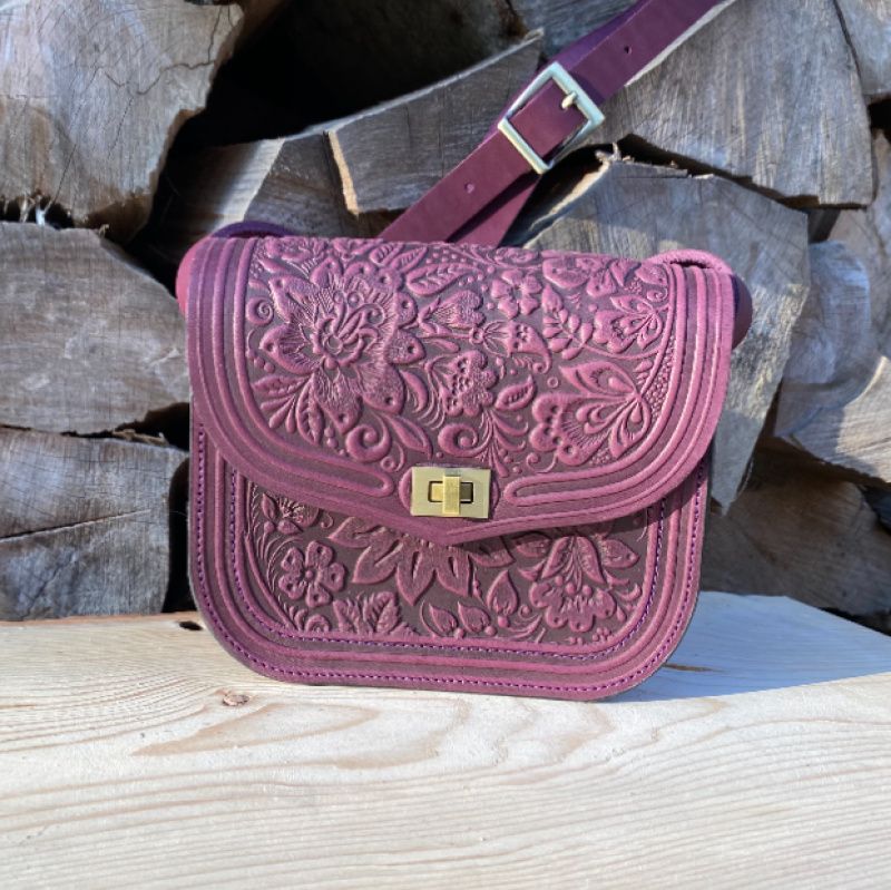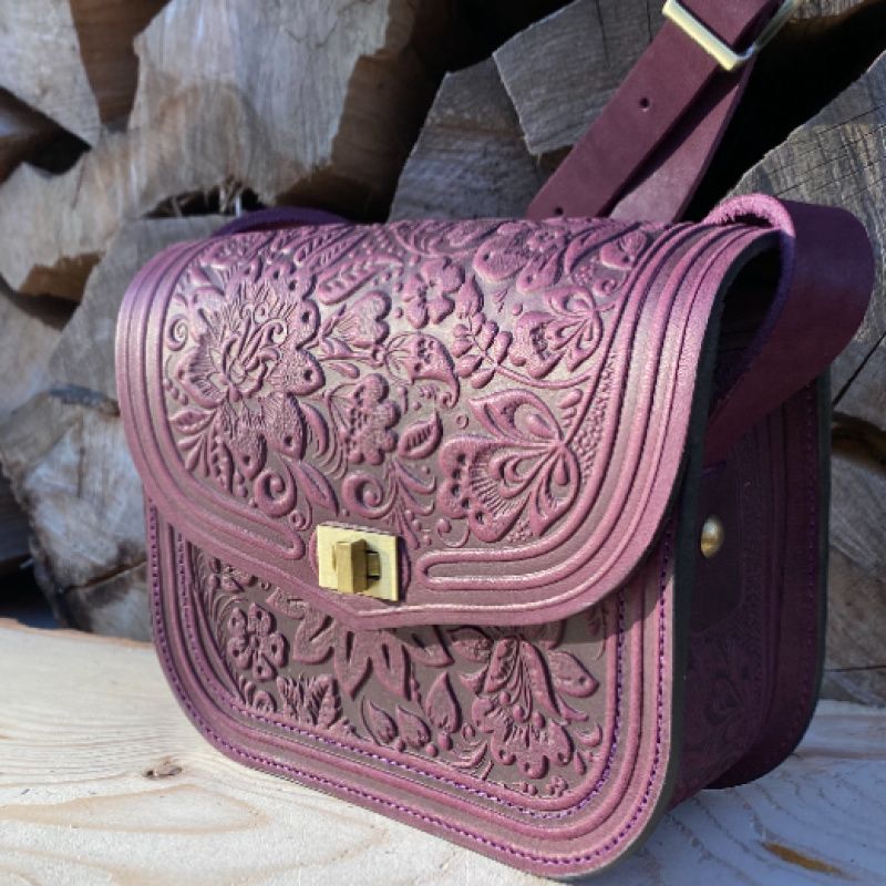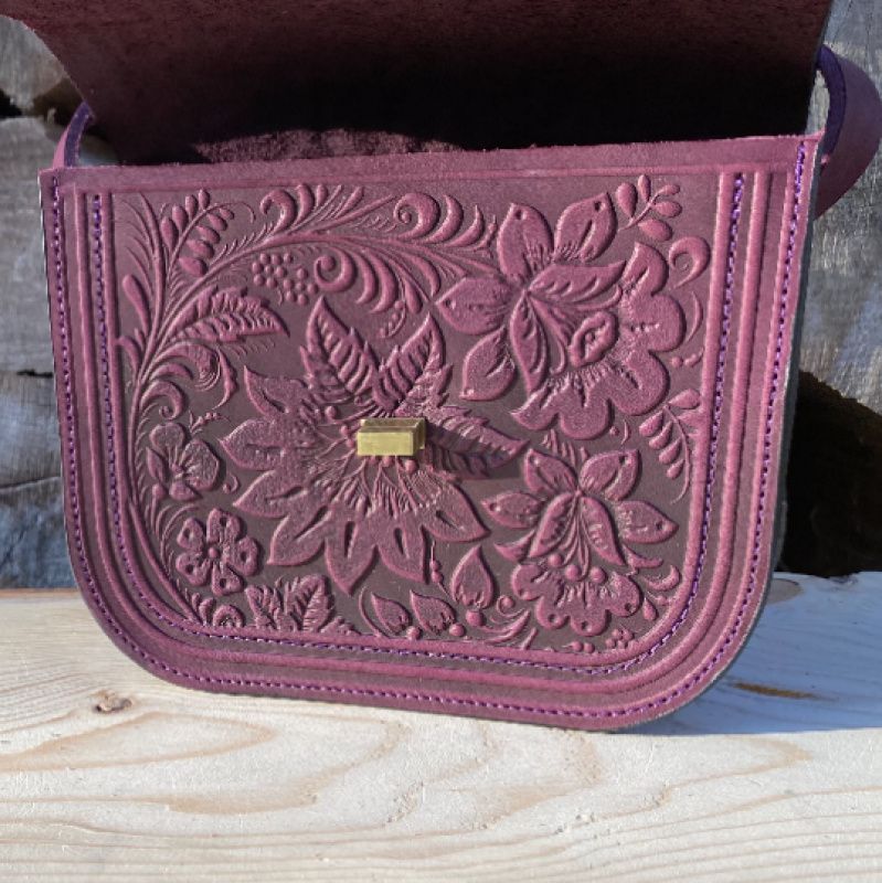СУМКА ШКІРЯНА "КВІТКА" КОЛІР Фіолетовий