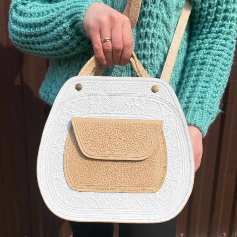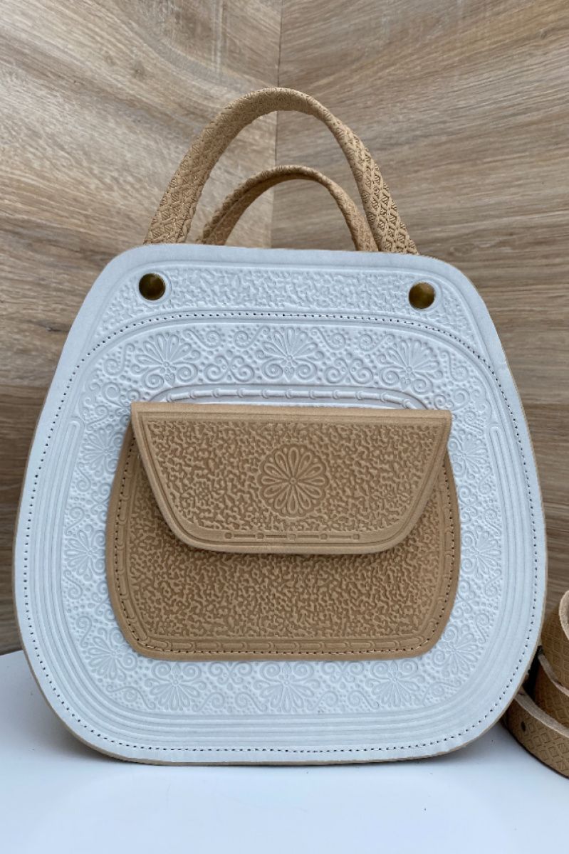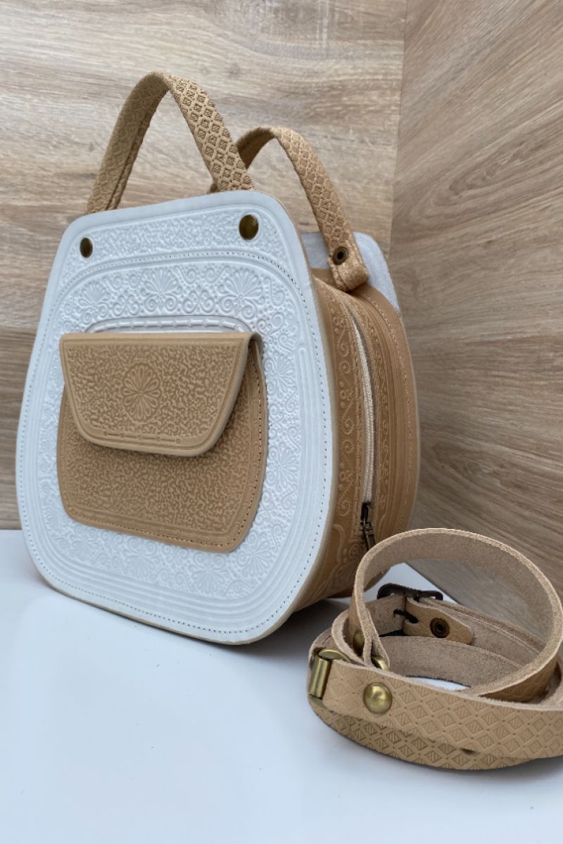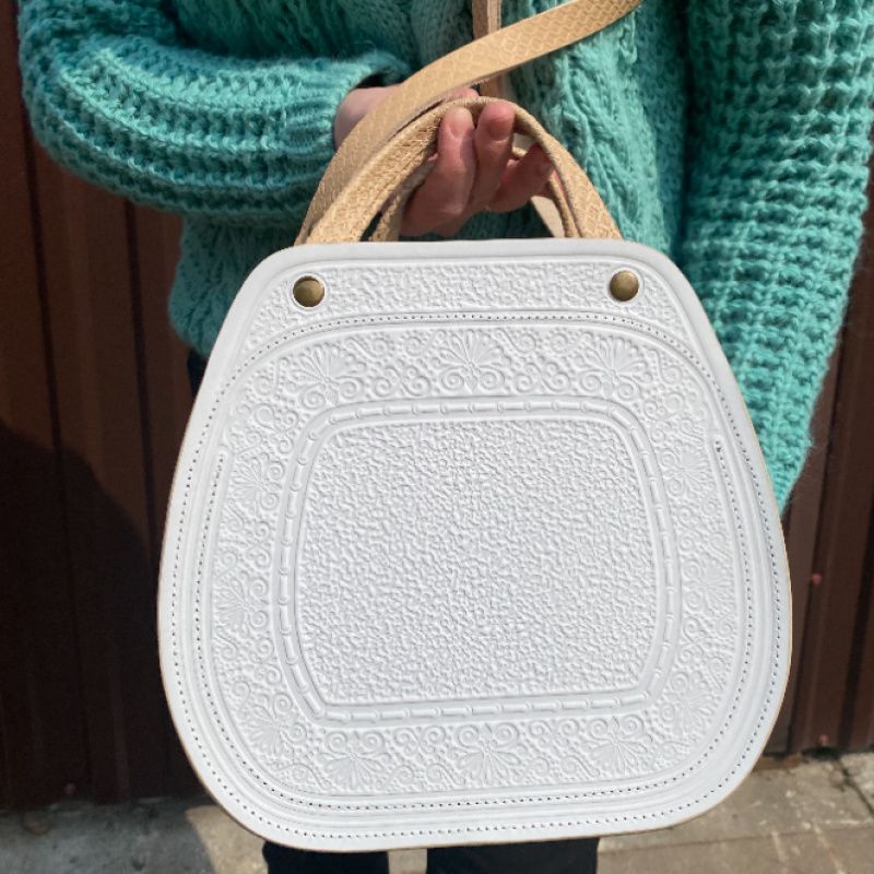 Сумочка "Азалія" виготовлена ​​з натуральної шкіри. Це дуже ніжно і елегантно. Сумочка виготовлена ​​з натуральної шкіри товщиною 3,8 мм +, що робить її міцною. Виготовлена за спеціальною технологією, завдяки якій орнамент зберігає свою красу, форму та функціональність. Тільки екологічно чисті та натуральні матеріали.