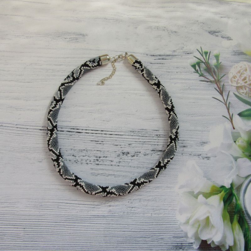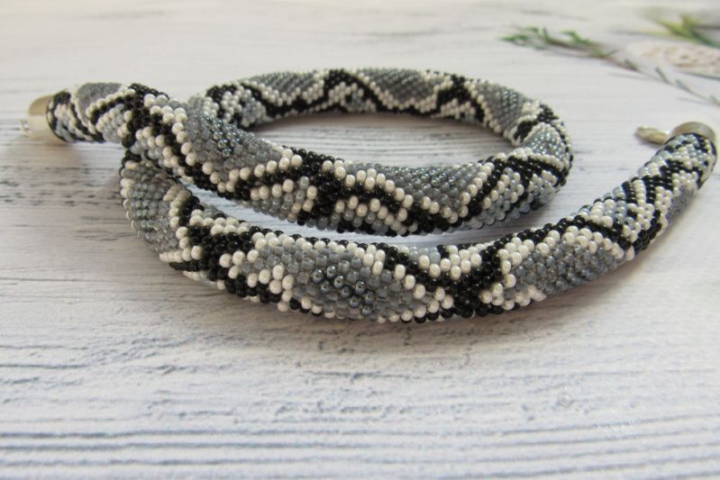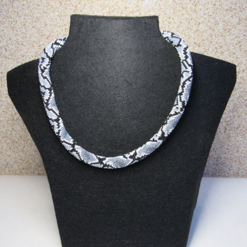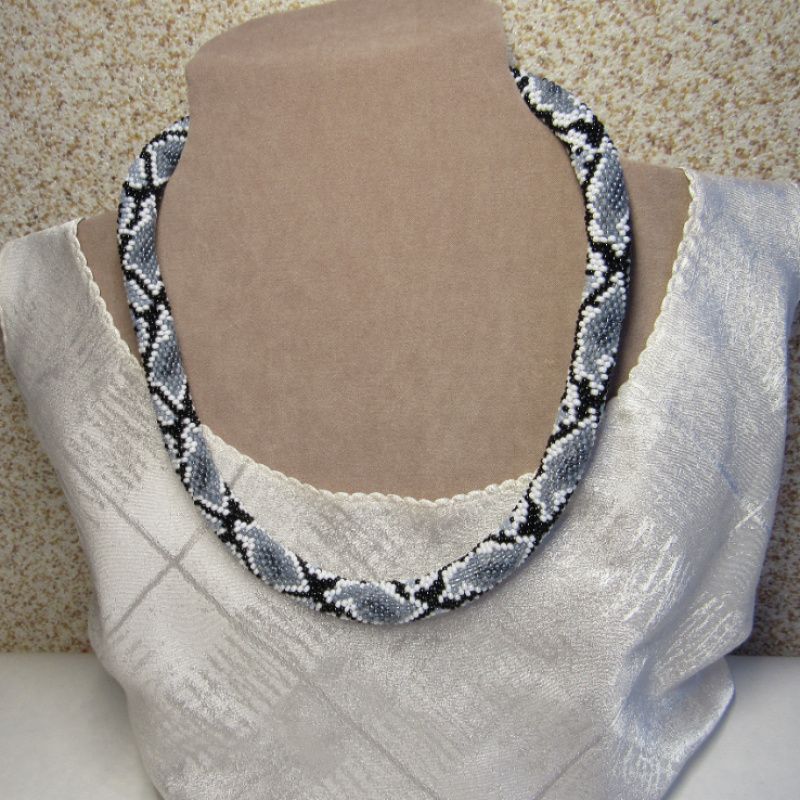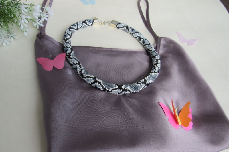 Дуже приваблива прикраса,виконана з якісного чеського бісеру і нагадує пітона,який спочиває.Вдягаючи цю прикрасу Ви не залишитесь поза увагою оточуючих