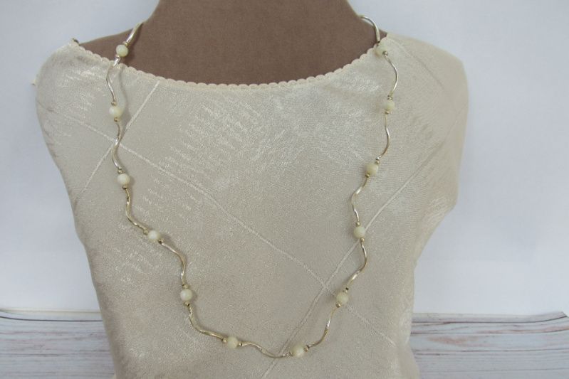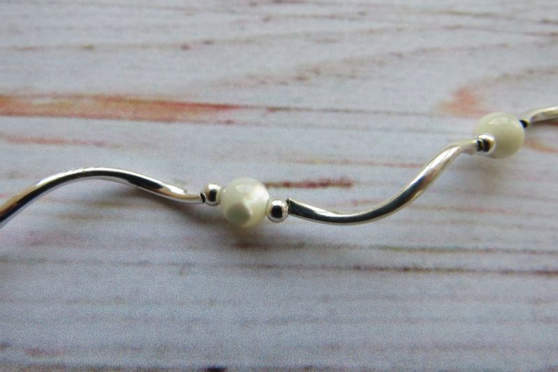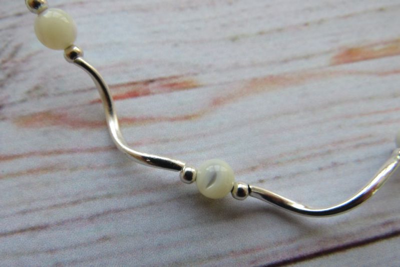стильне сучасне кольє виконане з натуральних намистин перламутру в мінімалістичному стилі стане прикрасою в урочистих моментах та повсякденному житті