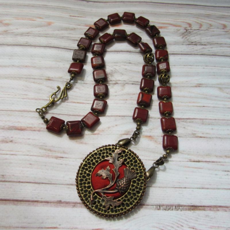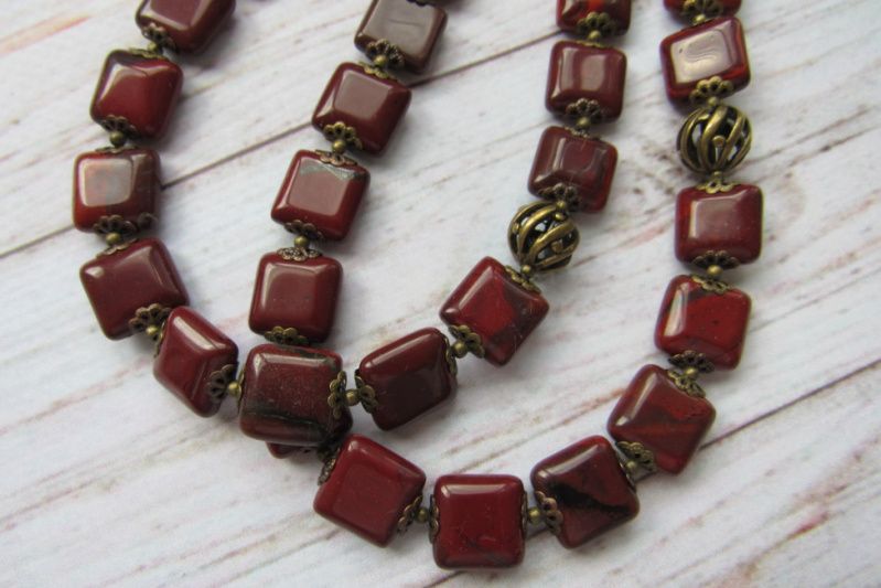 Оригінальне кольє виконане з яшми,природнього каменю,який є джерелом доброї енергії.В цьому кольє Ви будете виглядати еффектно і стильно