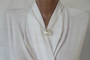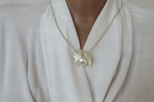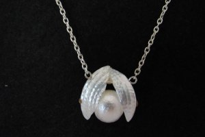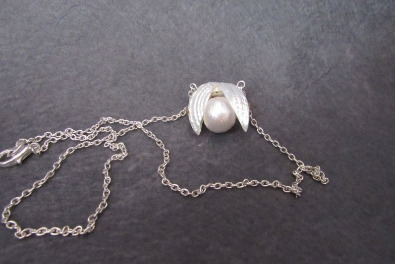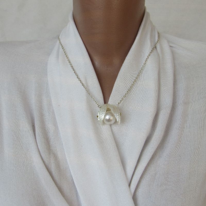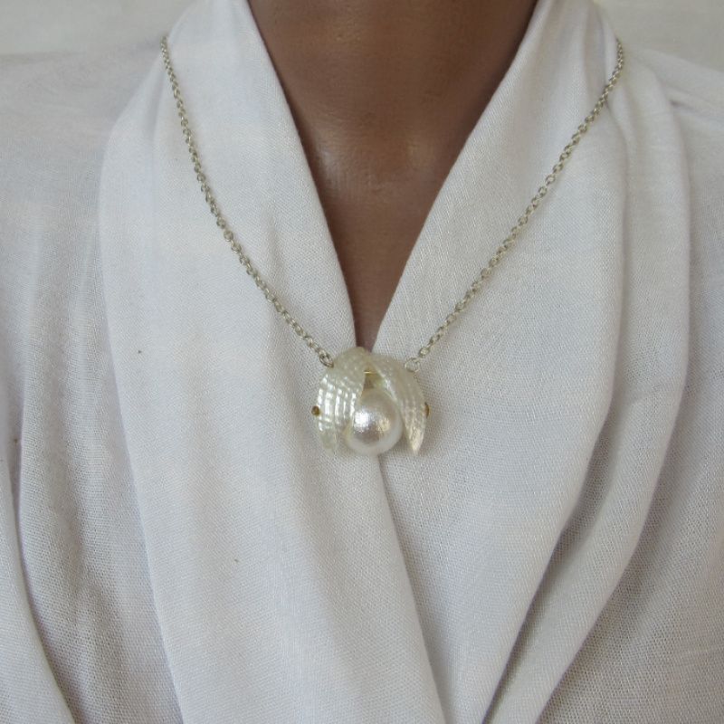 ніжний кулон з підвіскою з натуральної перлової мушлі та хлопкової перлини діаметром 12мм