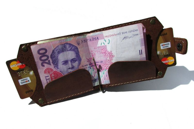 Затискач для грошей із натуральної шкіри з відділом для дрібниці. Практичний та зручний аксесуар, для тих хто цінує практичність та мінімалізм. Нічого зайвого. Відмінний подарунок для близьких та знайомих. Характеристики: Колір "Коньяк" Місткий відділ для дрібниці Горизонтальна та вертикальна фіксація купюр Розмір-11х8,5см Відділення для монет (закривається на кнопку) Два відділення для банківських карт (візиток) (легко входять 6 карт) Якість фурнітури Упаковка в подарунок Можливе виготовлення в інших кольорах.