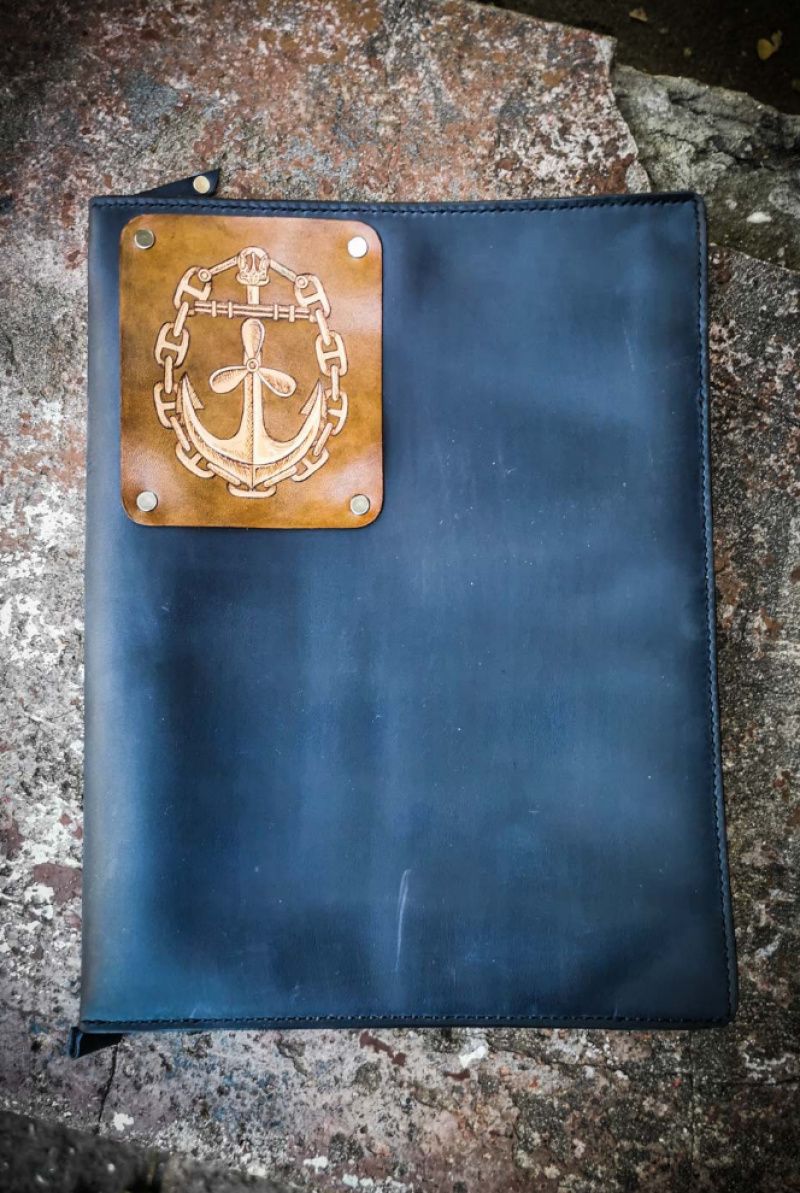 Папка для морських документів виконана на замовлення. Яскрава папка з індивідуальним малюнком поєднує в собі настрій і зручність. Дана модель виконана з натуральної шкіри Crazy Horse. Це вінтажна щільна шкіра, яка з часом додає виробу ретро стиль. Техніка нанесення малюнка на нашивки - випалювання з подальшою розписом. Розмір даної папки 30 * 20 см. Застібається на блискавку. Усередині даної папки є 19 відділень, 2 з яких розміру А4, 1 горизонтальне і 16 відділень для сертифікатів і паспортів. Малюнок на дану папку ми наносили на окремому елементі шкіри, який закріпили на виробі заклепками. Даний варіант кріплень зручний тим, що можна в будь-який момент замовити нову картину. У такому варіанті вони не набридає і Ви можете в будь-який момент зробити собі інший дизайн. Прошивка по периметру виконується тільки вручну, вощеного ниткою сідельним швом. Тільки ручної шов робить виріб максимально міцним і зносостійким. Ми використовуємо в нашій роботі тільки високоякісні матеріали і професійну лінійку хімії, таку як Fiebing's і Eco-Flo. Ми постійно вчимося, для того, щоб удосконалювати свої навички і виготовляти шкіряні вироби все лучше.Поетому, на підтвердження наших слів, на наші вироби ми даємо гарантію 3 роки. Smyrnovleather - це яскраві і душевні шкіряні вироби. Це речі, які дарують радість. Кожен виріб упаковано в нашу фірмову подарункову упаковку.