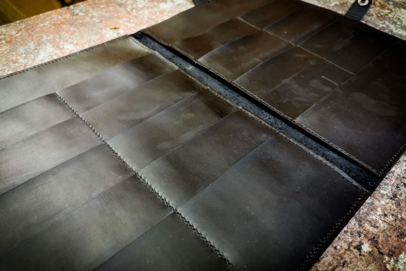 Папка для морських документів виконана на замовлення. Яскрава папка з індивідуальним малюнком поєднує в собі настрій і зручність. Дана модель виконана з натуральної шкіри Crazy Horse. Це вінтажна щільна шкіра, яка з часом додає виробу ретро стиль. Техніка нанесення малюнка на нашивки - випалювання з подальшою розписом. Розмір даної папки 30 * 20 см. Папка закривається на три кнопки, які ми сховали в шкіряні ремінці. Усередині даної папки є 19 відділень, 2 з яких розміру А4, 1 горизонтальне і 16 відділень для сертифікатів і паспортів. Малюнок на дану папку ми наносили на окремому елементі шкіри, який закріпили на виробі заклепками. Даний варіант кріплень зручний тим, що можна в будь-який момент замовити нову картину. У такому варіанті вони не набридає і Ви можете в будь-який момент зробити собі інший дизайн. Прошивка по периметру виконується тільки вручну, вощеного ниткою сідельним швом. Тільки ручної шов робить виріб максимально міцним і зносостійким. Ми використовуємо в нашій роботі тільки високоякісні матеріали і професійну лінійку хімії, таку як Fiebing's і Eco-Flo. Ми постійно вчимося, для того, щоб удосконалювати свої навички і виготовляти шкіряні вироби все лучше.Поетому, на підтвердження наших слів, на наші вироби ми даємо гарантію 3 роки. Smyrnovleather - це яскраві і душевні шкіряні вироби. Це речі, які дарують радість. Кожен виріб упаковано в нашу фірмову подарункову упаковку.