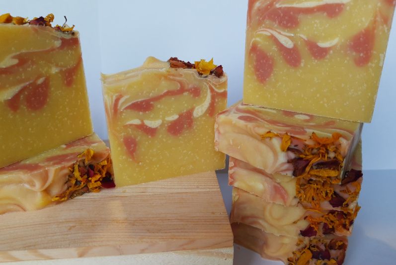 Мило на інфузій кульбаб. його сонячний ніжний відтінок - результат витяжки з квітів кульбаби, абсолютно без барвників, таке буває раз на рік. Аромат ніжний і тонкий, весняних квітів. Це звичайне на вигляд рослина, насправді, просто невичерпне джерело необхідних корисних речовин для шкіри і волосся. Кульбаба містить велику кількість необхідних нам мінералів і вітамінів, таких як мідь, кальцій, марганець, залізо, бор, магній, цинк, калій, а також вітамін В6, А, В1, С, В2, В12, В3 і D. Застосування кульбаби в косметології особи пом'якшує і розгладжує кожу.Ето ефективний засіб для лікування шкірних висипань, акне і пігментних плям. Оскільки ця рослина є хорошим антиоксидантом - воно допомагає позбутися від проявів старіння шкіри. Основа масел - масло виноградних кісточок, кокосове, оливкова, пальмова. Аромат весняного саду.