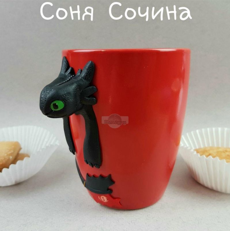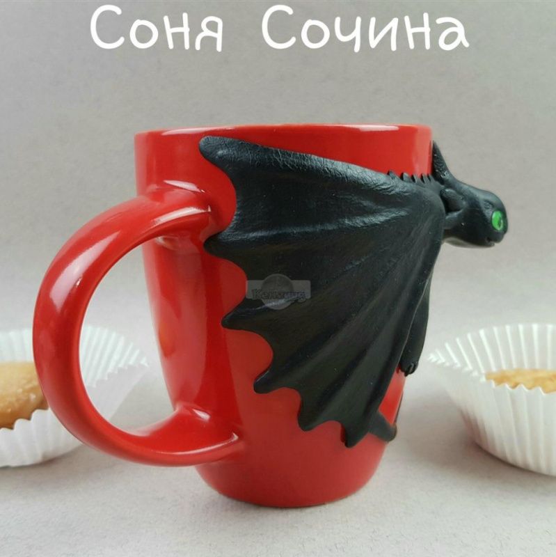 Новий унікальний дизайн Беззубик на чашці із полімерної глини! Цей художній проект є результатом естетичного переосмислення мегапопулярної моделі дракона на гуртку "Рибоглот".