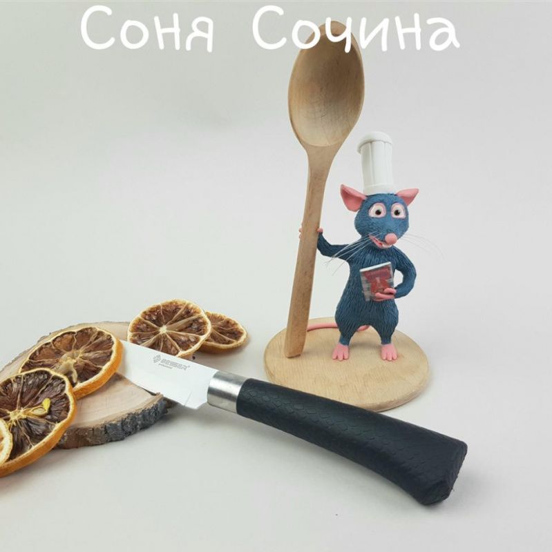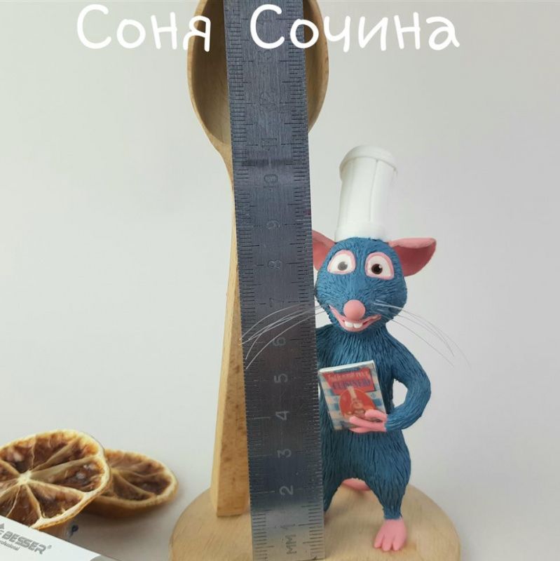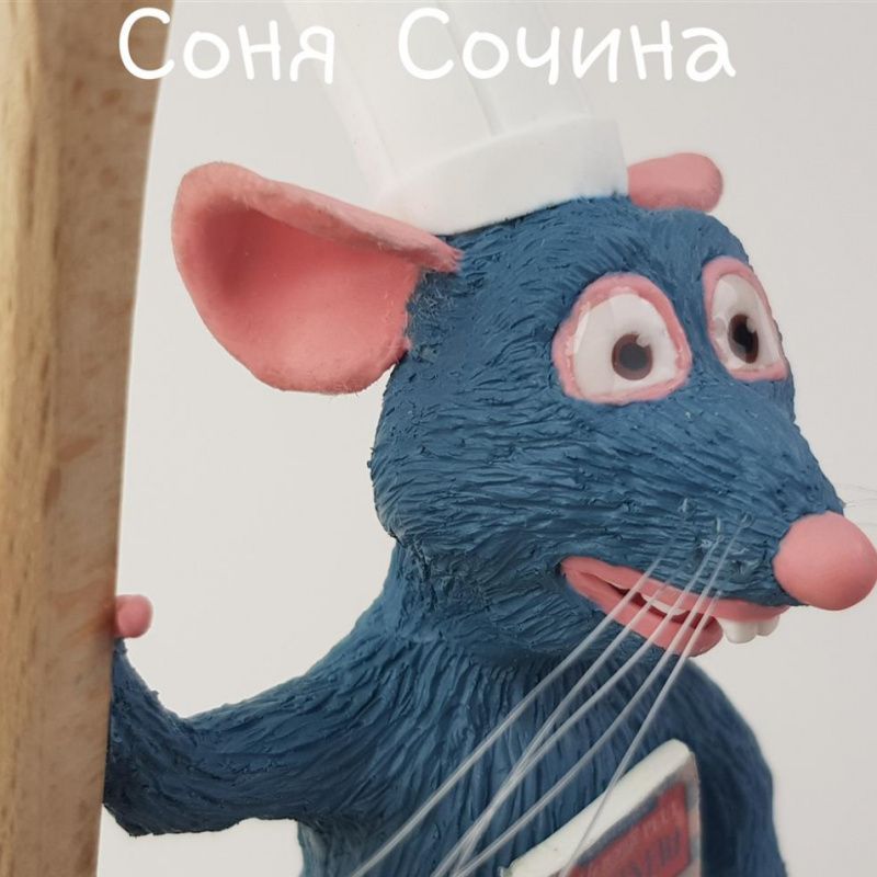 Гурман Ремі з мультфільму "Рататуй" полюбився дорослим, дітям і дівчатам, що навіть верещать від виду живої мишки! Дерев'яна ложка і фігурка прикручені до фанерної підставки за допомогою повністю прихованих шурупів, а тому конструкція виходить міцна. Огляд на ютуб: https://youtu.be/f9_9k6ifQhY