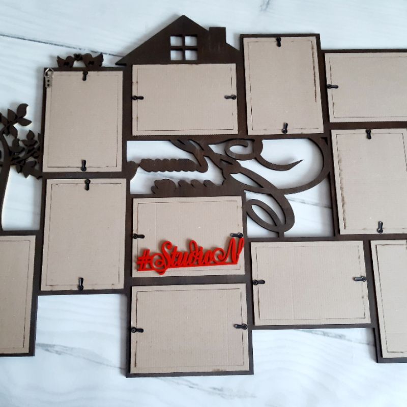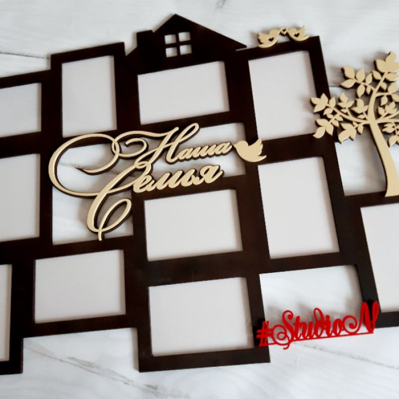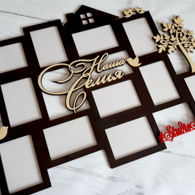 Фоторамка "Наша сім'я" № 7 з декором деревом, пташками, будиночком 81х60 см, фото 11 шт, формат 10х15 см Чудовий подарунок в сім'ю. Така фоторамка буде відмінним подарунком рідним і друзям. інтер'єрі будинку займають гідне місце, фото в найщасливіші моменти життя зберігати в красивих рамках і в зоні відпочинку вашої родини - стало вже традицією. Скло замінила плівка пет, і рамки стали легкими по вазі, зручно кріпити на стіну і не побоюватися що скло розіб'ється, з вивороту фото закриті картоном на анкерах, і в будь-який момент можна легко і просто замінити фото. Відмінним подарунком стане рамка для фото з натурального дерева рідним і близьким людям. Рамки на сьогоднішній день є одним з найпопулярніших видів декору. Є багато варіантів як оформити ваш будинок або квартиру стильно і зі смаком, так що кожна стіна і кожен куточок висловить вашу індивідуальність. Просто забудьте про порожні стінах! Вони нічого не кажуть, тихо і порожньо. Прикрасьте стіни фотографіями і прикрасьте ними стіни в різних кімнатах вашого будинку. Це, звичайно, творчий сміливий варіант - показати свої найкращі спогади, увічнені на фотографіях. Майстерно оформлена фото композиція швидко притягує погляди і безсловесно розповідає цілі Сімейні історії ...