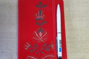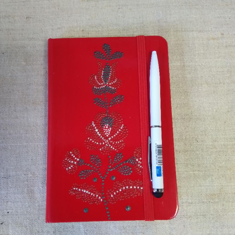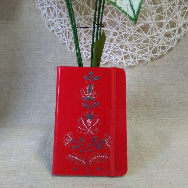 95 аркушів кремового кольору в клітинку, На тильному форзаці кишеня, блок фіксується гумкою. Авторське оформлення обкладинки. + Ручка кулькова Mini touch - 110мм.