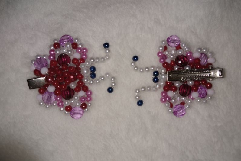 Ексклюзивні дуже красиві заколочки ручної роботи. Ширина 5 см. Довжина від початку до кінця вусиків 5,5 см.