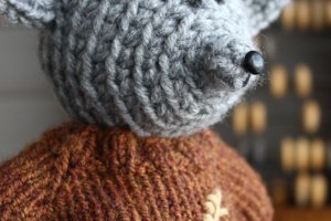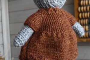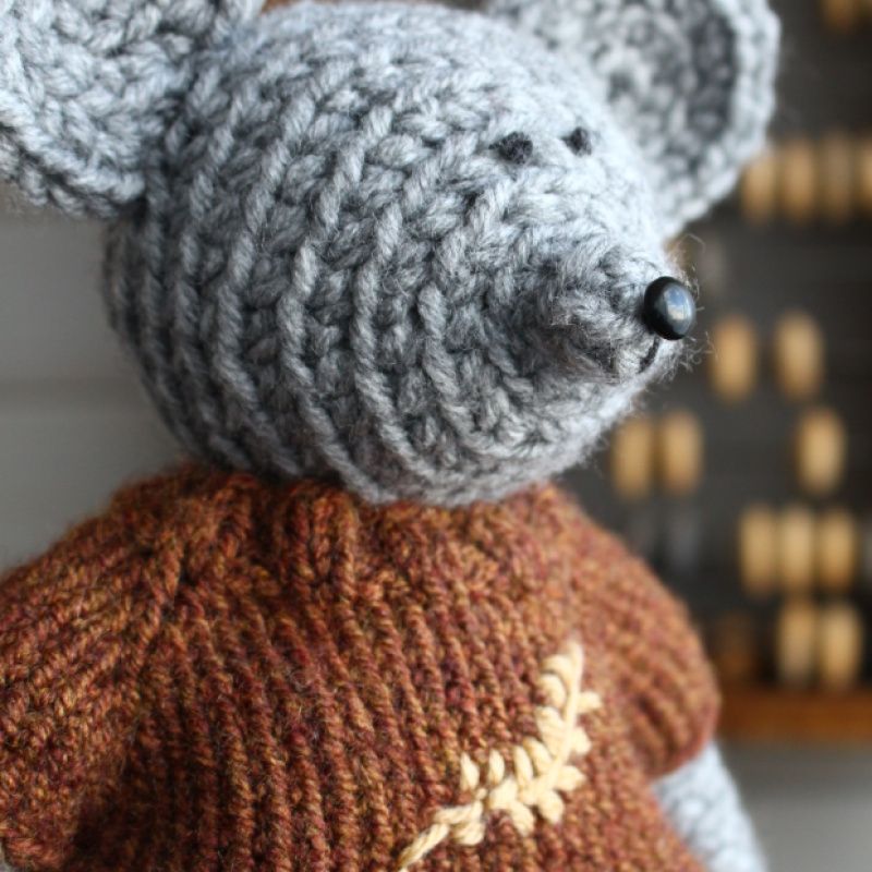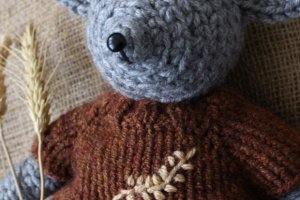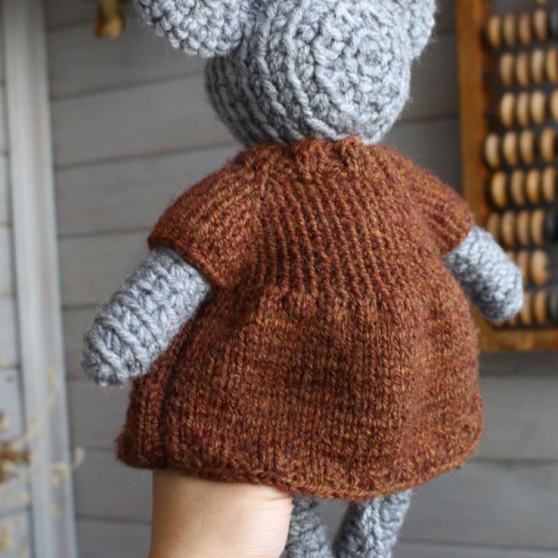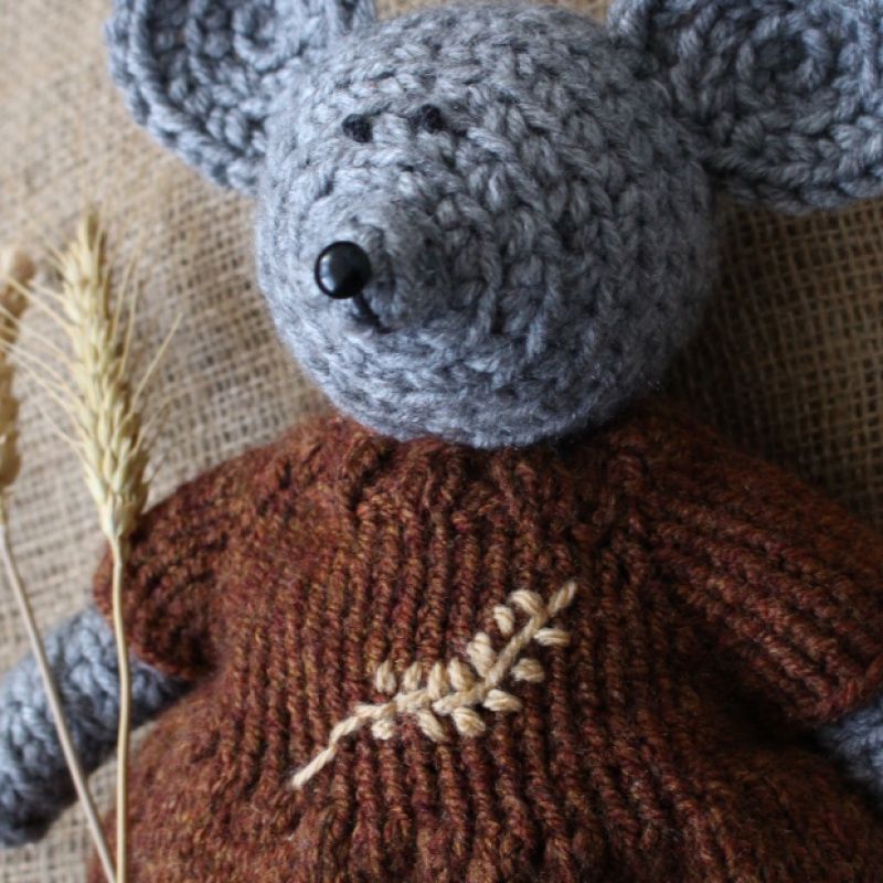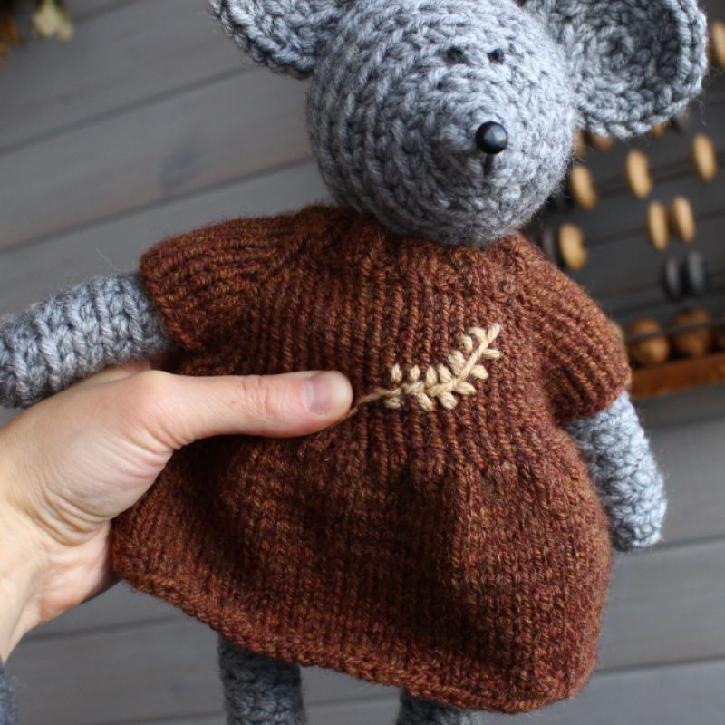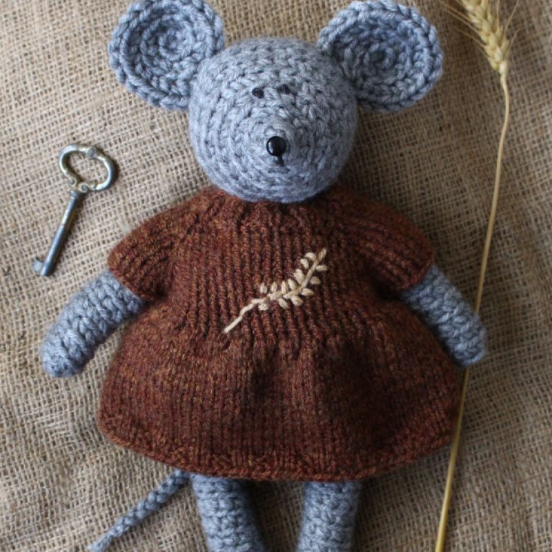 В'язана мишка у сукні з вишитою пшеничкою. Сукня в'язана і можна знімати. Така мишка стане чудовим подарунком на будь яке свято) чи просто так. Мишка мріє знайти свій дім.