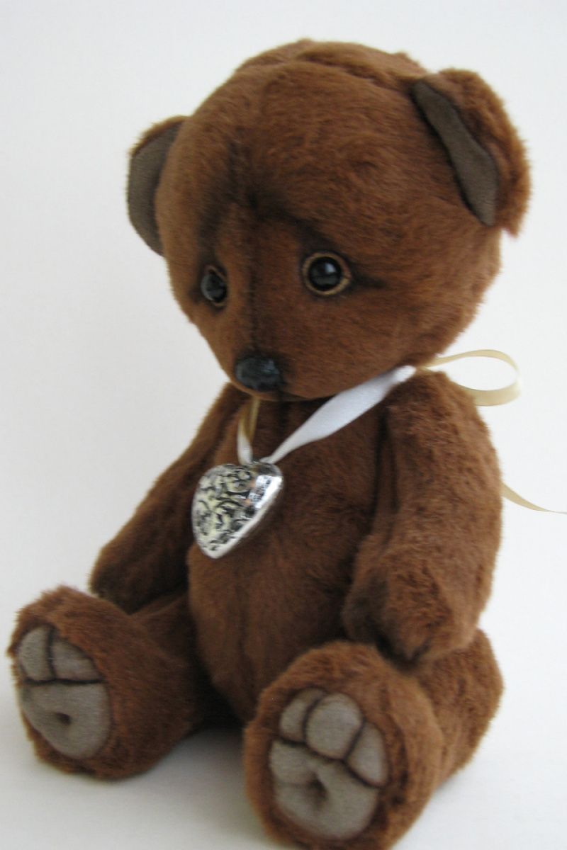 Медведика виготовлено з якісного синтетичного м*якого хутра. Голова і лапки рухливі за рахунок дисків і шплінтів. Тонування виконано художніми масляними фарбами.