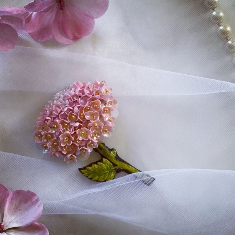 Вишита частина брошки покрита лаком, для полегшення догляду.