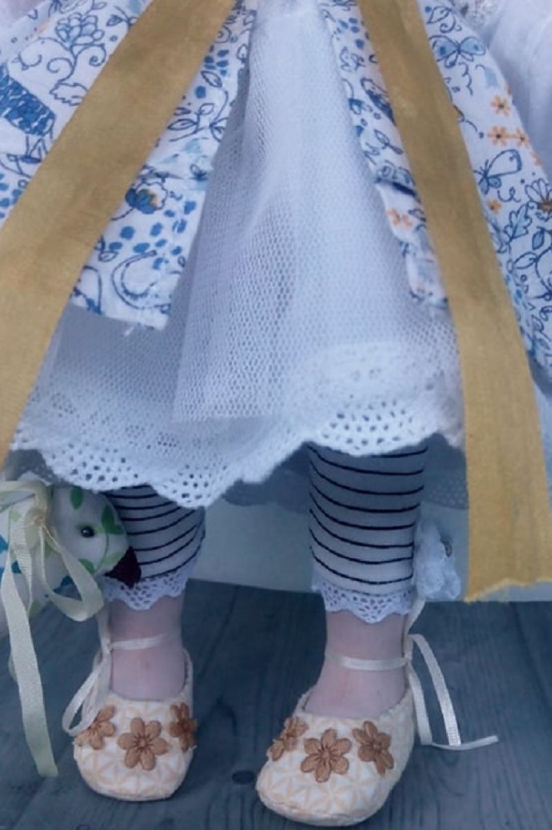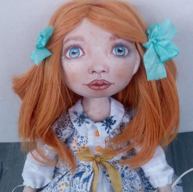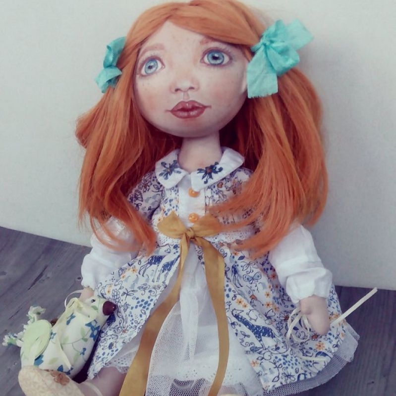 Реалістична лялечка виконана в техніці грунтований текстіль.Куколка була максимально зроблена щоб нагадувати справжню девочку.У іграшки голова рухлива, особа розписано акриловими фарбами, волосся штучні, пріклеенние.Одежда -хлопок снімается.В руках лялечки маленька пташка.
