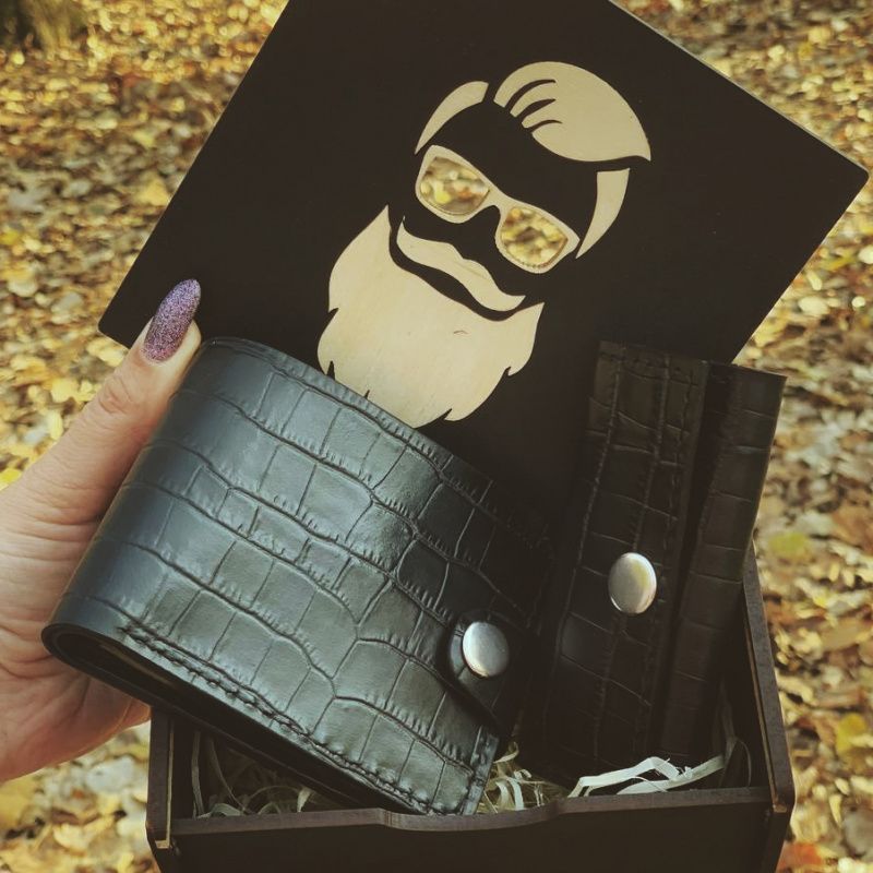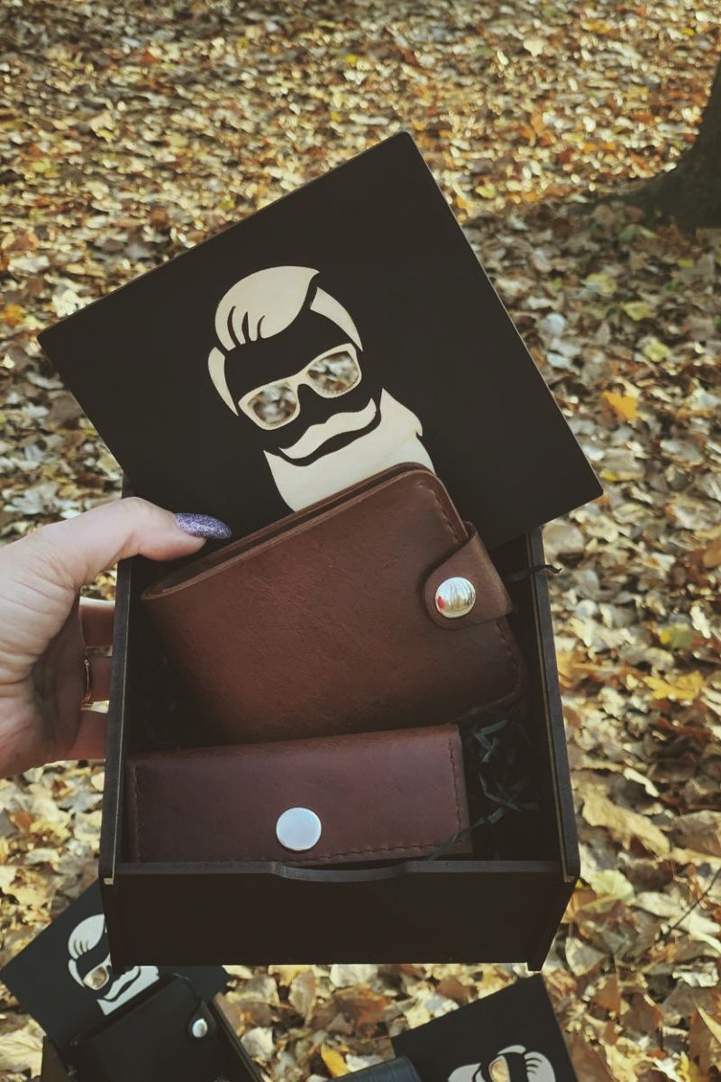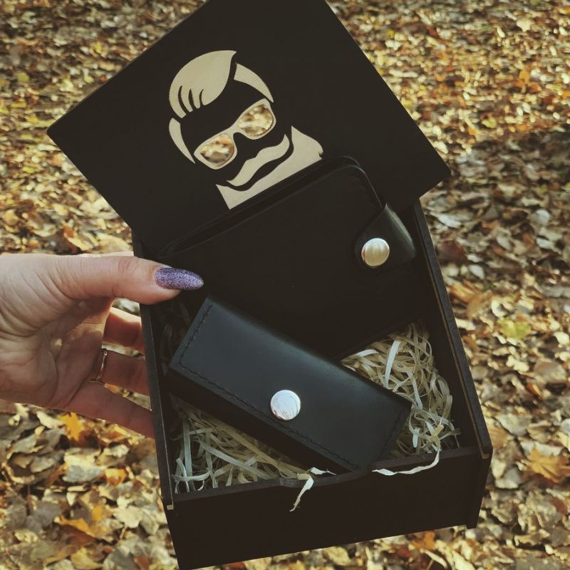 В набір входять портмоне з одним відділенням для купюр та монетницею та ключниця