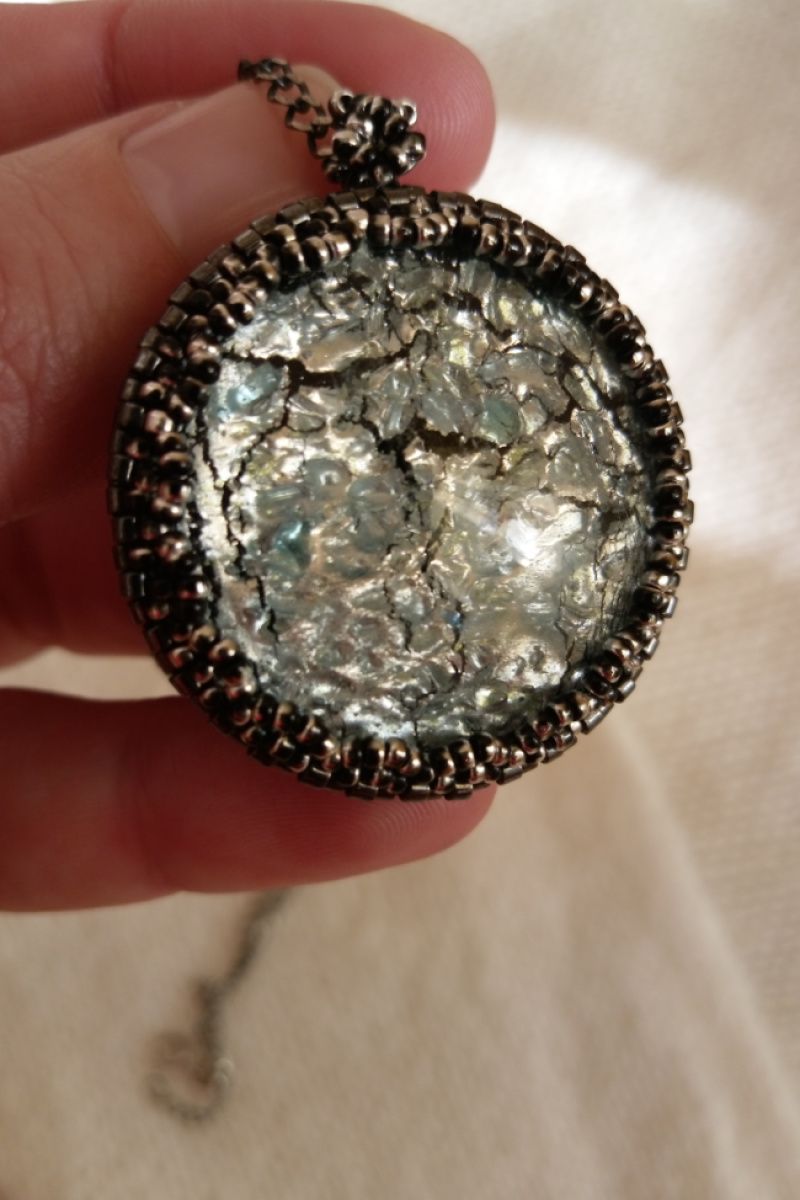 Прекрасний кулон з чеським скляним кабошоном з космічною картиною, обшитий самим дрібним японським бісером. Ланцюжок - срібло 925 проби. Ланцюжок можна носити окремо.