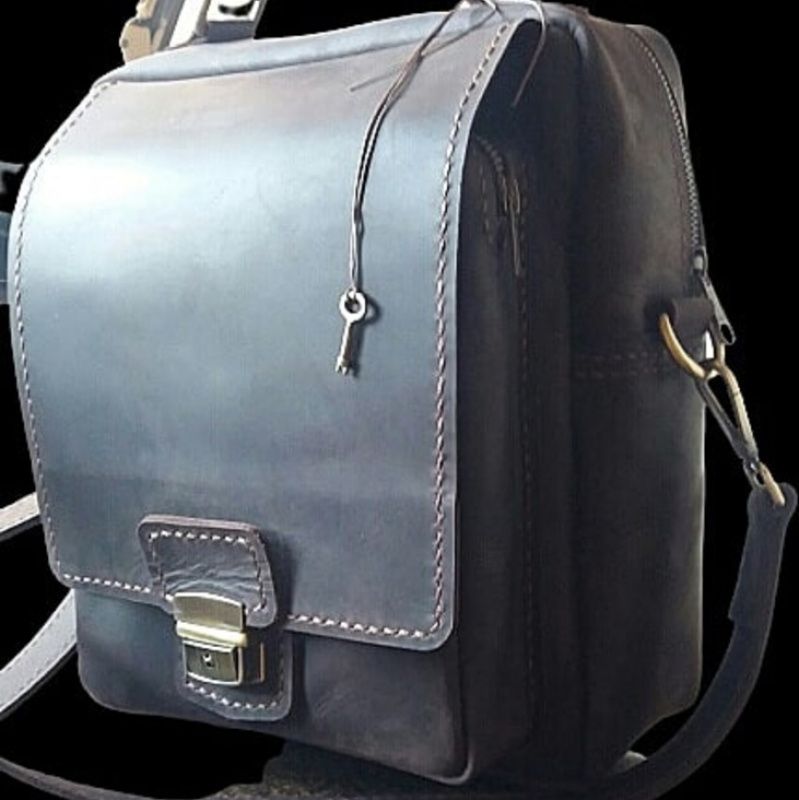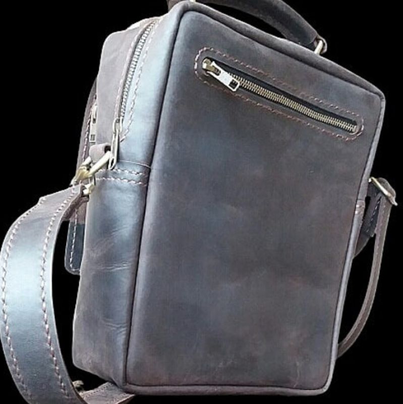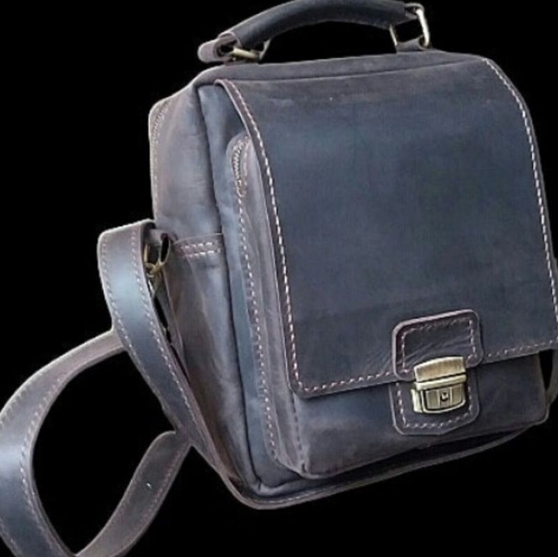 Сумка выполнена из натуральной кожи крейзи хорс, толщиной 1,4 -1,6 мм.. Регулируемый наплечный ремень из натуральной кожи. Используется качественная, металлическая фурнитура, цвет антик. Внутри одно большое отделение, один большой боковой карман и один малый боковой кармана на молнии. Размеры 30 см. х 24см. х 12см..
