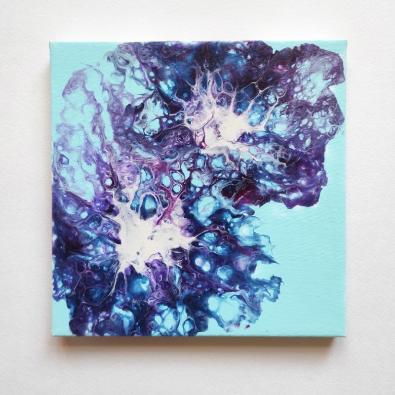 Картина в техніці Fluid Art, рідкий акрил. Абстракція. Акрил, полотно. 20 х 20 см. Розміщувати на стіні можна в довільному вигляді. Не вимагають рамки, тому що краю картини є продовженням картини.