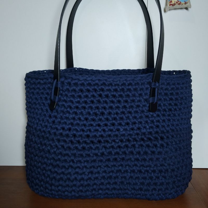 Сумка-шоппер з трикотажної пряжі гачком з ручками з еко-шкіри.