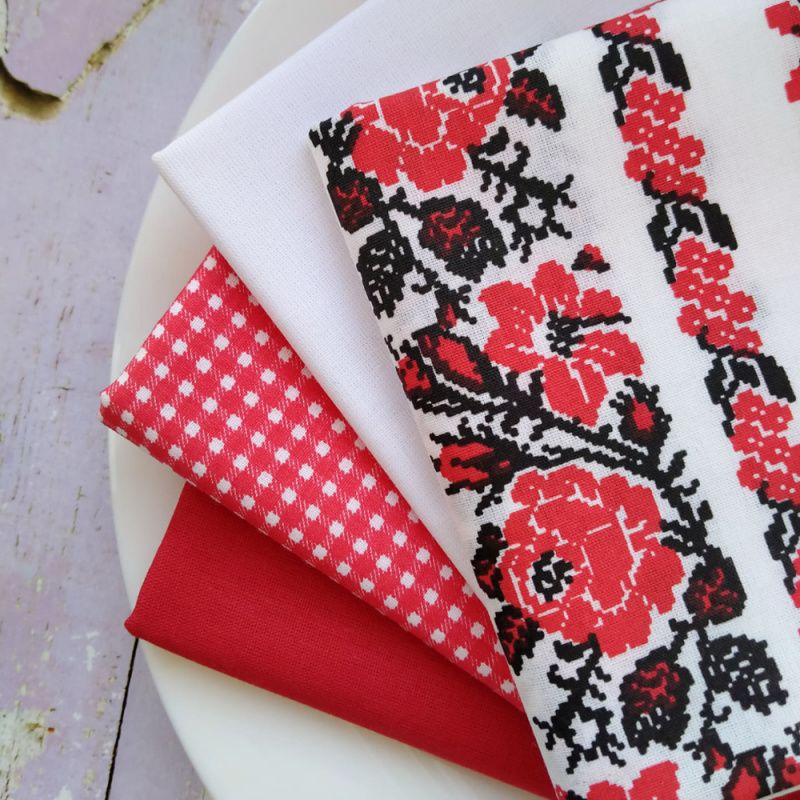 Набір бавовни для рукоділля із 4 шт. Розмір 50см на 40см 100% бавовна Малюнок із квітами йде смугами.