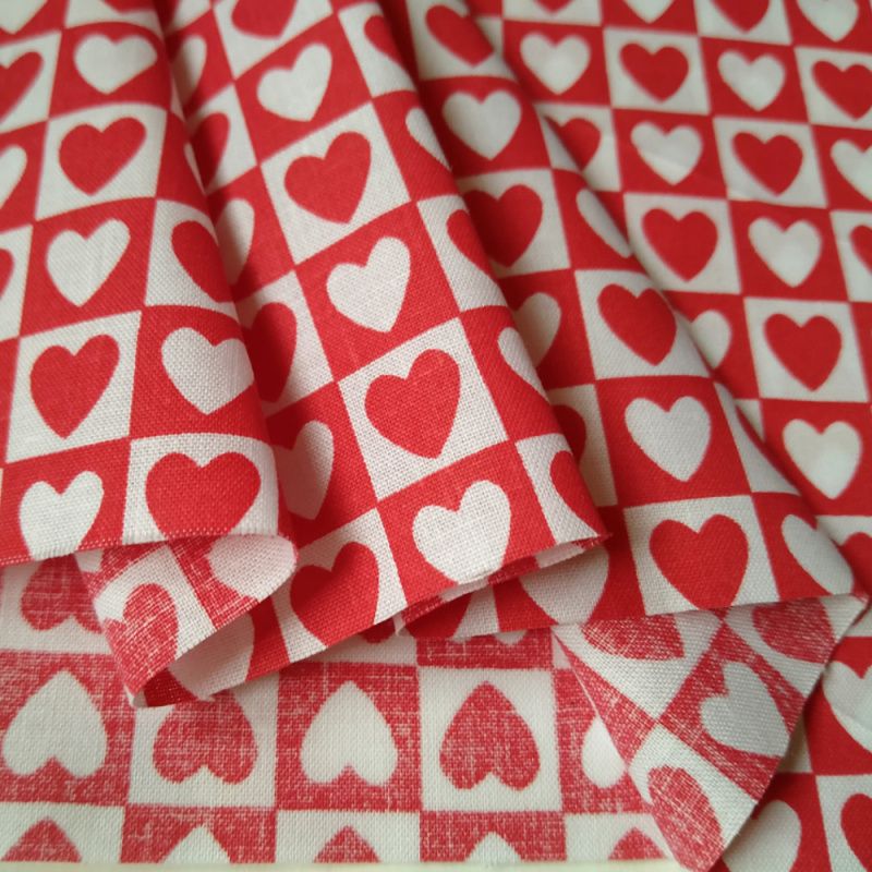 Тканина бавовна для рукоділля червоно-білі сердечка