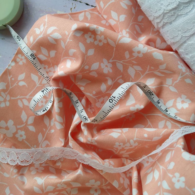 Тканина бавовна для рукоділля гілочки і квіточки на абрикосовому
