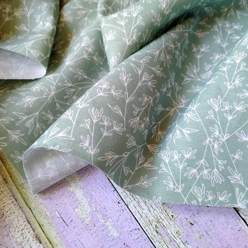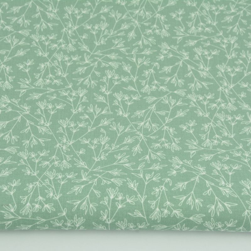 Тканина бавовна для рукоділля гілочки на пастельному мятном