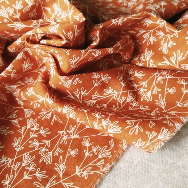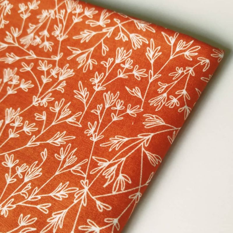 Тканина бавовна для рукоділля гілочки на теракотовому тлі