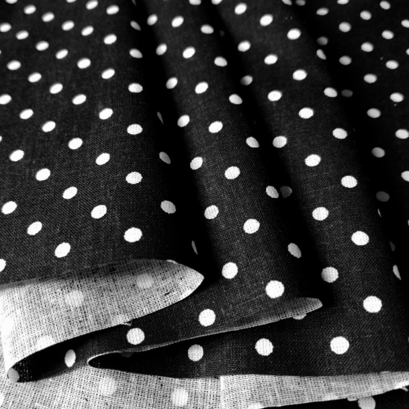Тканина бавовна для рукоділля горошок 4мм на чорному