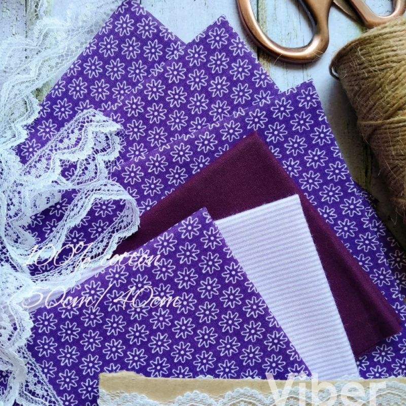 Тканина бавовна для рукоділля фіолетові квіточки Розмір 50см на 40см 100% бавовна Відправка Новою поштою або Укрпоштою