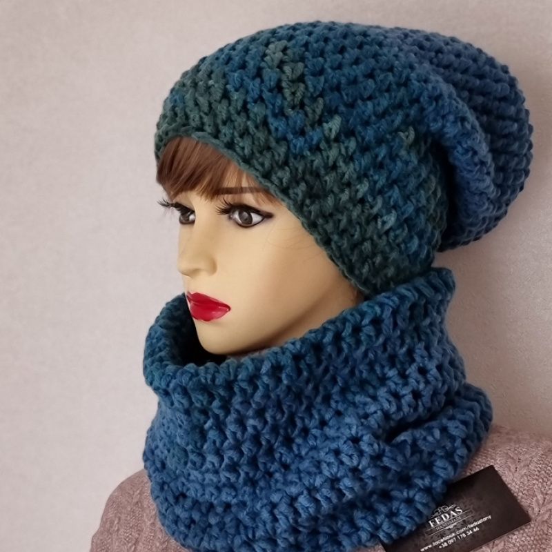 Теплий зимовий комплект із товстої пряжі шапка підкладка фліс