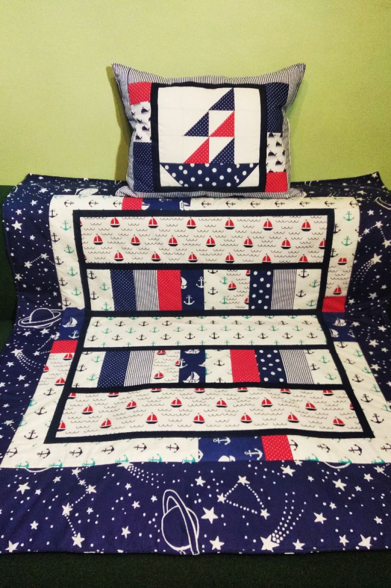 Ріє вітрило на морях, якщо шторму немає. Шумить море, посилаючи велике привітання, А над морем пропливуть хмари. см на 44 см, простегана зі слімтексом 100, наповнена гіпоалергенним синтепухом, комплект пошитий зі 100% бавовни, рекомендується прання на делікатних режимах, не вище 40 градусів, при мінімальному віджиму, допускається прасування теплою праскою не більше.