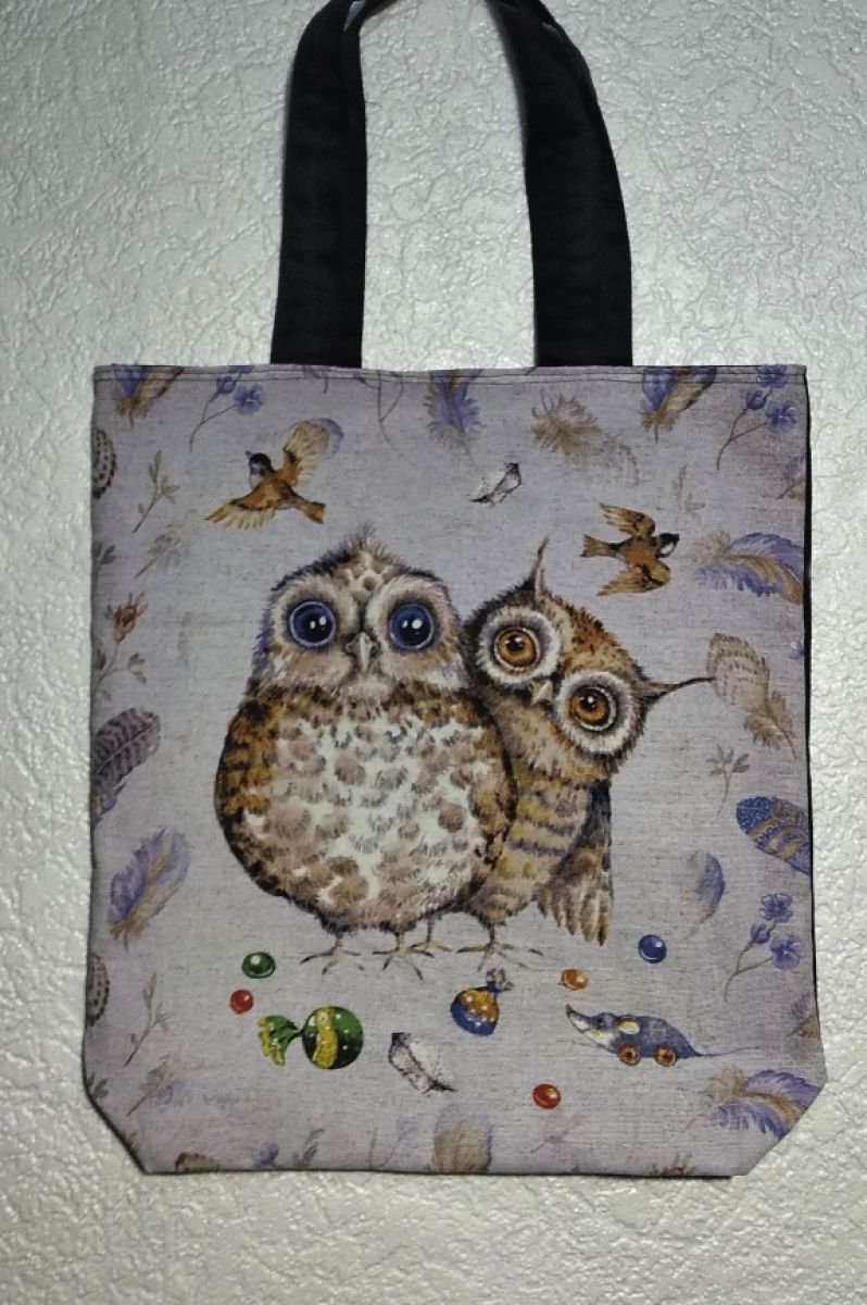 Сови прилетіли))) Сумка шопер зшита з бавовняної рогожки та бавовняної саржі, малюнок нанесений цифровим друком, сумка з підкладкою, внутрішньою кишенею, довжина разом з ручкою 75 см, ширина 44 см, рекомендується прання на делікатних режимах з мінімальним градусів.