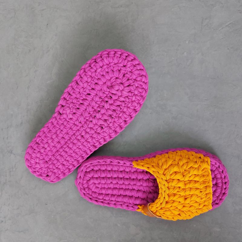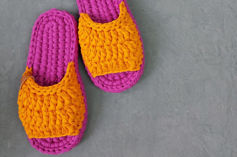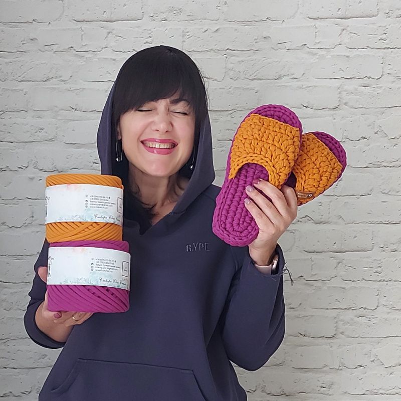 Стильні та зручні домашні тапочки виготовлено з хлопкової трикотажної пряжі. При в'язанні на замовлення враховується не тільки довжина стопи, але і повнота: вузька ніжка, середня, або широка. Це означає, що в капцях буде зручно всім.