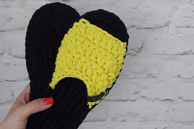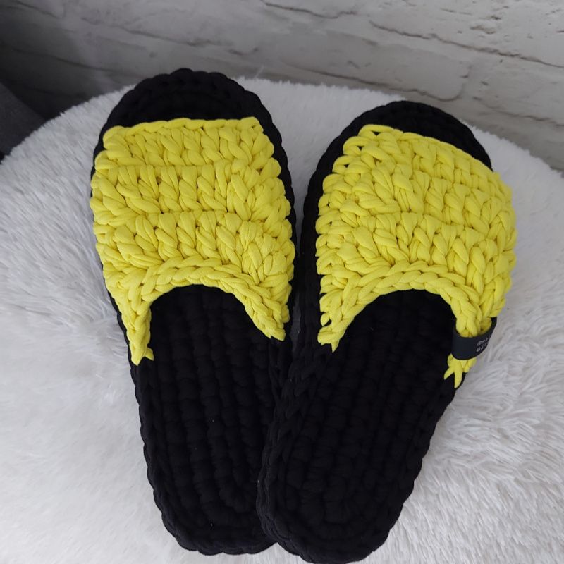 Стильні та зручні домашні тапочки виготовлено з хлопкової трикотажної пряжі. При в'язанні на замовлення враховується не тільки довжина стопи, але і повнота: вузька ніжка, середня, або широка. Це означає, що в капцях буде зручно всім.
