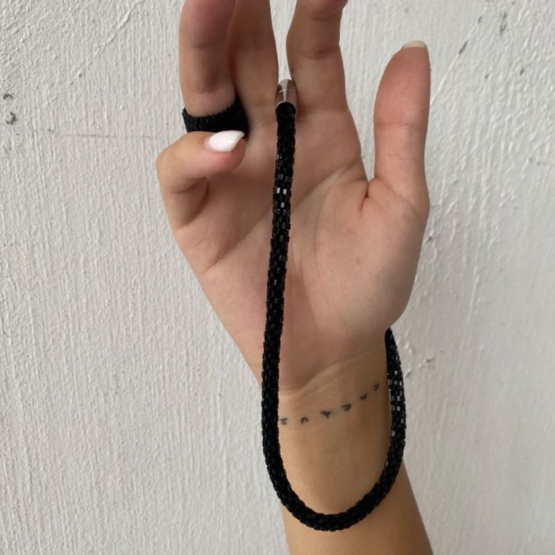 Яскравий та стильний жгут на шию, під будь-який стиль та зовнішність, зроблений з якісного японського бісеру, має магнітну застібку з нержавіючої сталі. Плететься гачком, що дає можливість жгуту мати тонкий круглий вигляд та міцність. Довжина виробу - 40см