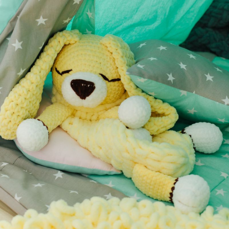 М'яка плюшева пряжа не залишать байдужим нікого, навіть дорослих). В ній можна зберігати сорочку нічну, цукерки або все, що забажає Ваша душа. Також Піжамниця може прикрашати Вашу кровать, диван, як елемент декору.