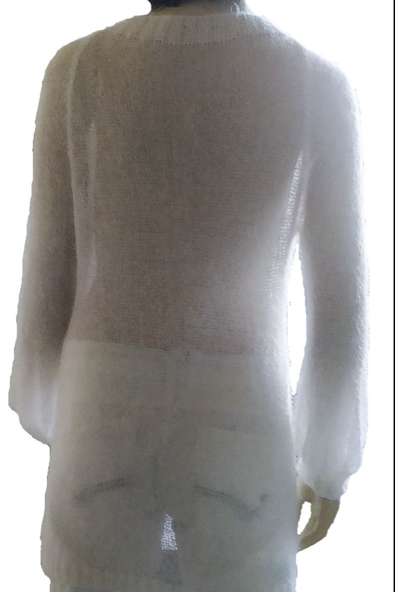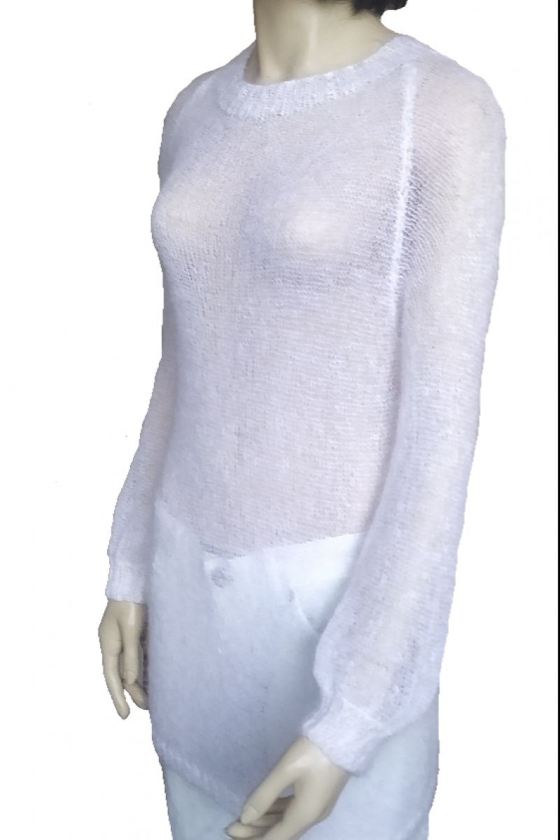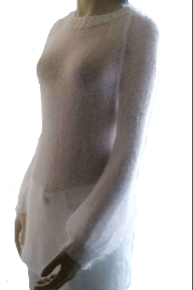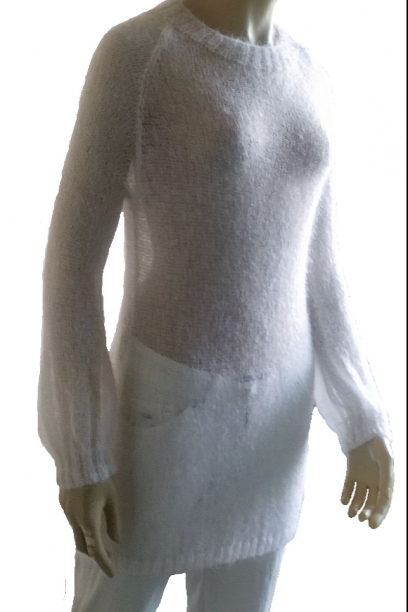 Довгий білий светр - оверсайз найтоншого кідмохера. Невагомий, легкий, як хмара. М'яка, затишна, ніжна, прозора. Светр реглан. Гумки на рукавах, нижніх краях та горловині пов'язані у дві нитки. Всі деталі після в'язки були випрані, тому светр не витягнеться. Підходить для розмірів 48-50. Для високого зросту. Зростання манекена 1 метр 75 сантиметрів. Довжина – 80 сантиметрів Ширина в нерозтягнутому стані – 49 сантиметрів. Лінія реглану – 28 сантиметрів Рукав від верху реглану 69 сантиметрів. Прати виключно вручну при температурі не вище 30 градусів з додаванням миючого засобу, що не містить хлору. Ви можете додати кондиціонер для білизни. Замочіть засіб на 10 хвилин|мінути|, потім змийте чистою водою. Злегка відіжміть долонями і розкладіть по гладкій поверхні на рушник до повного висихання.